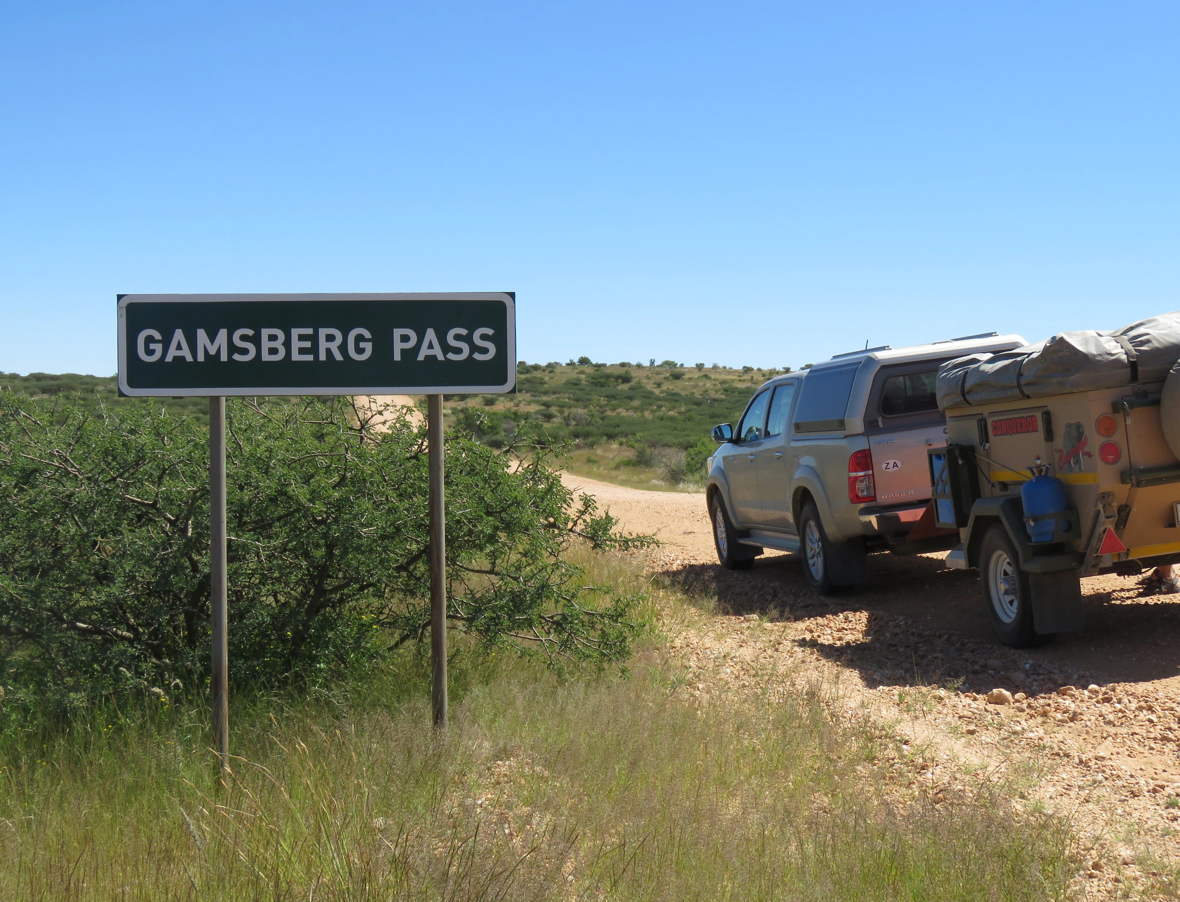 Ons hou verby na die Gamsbergpas. Ons kruis die Wiesenfellsrivier ‘n paar keer.