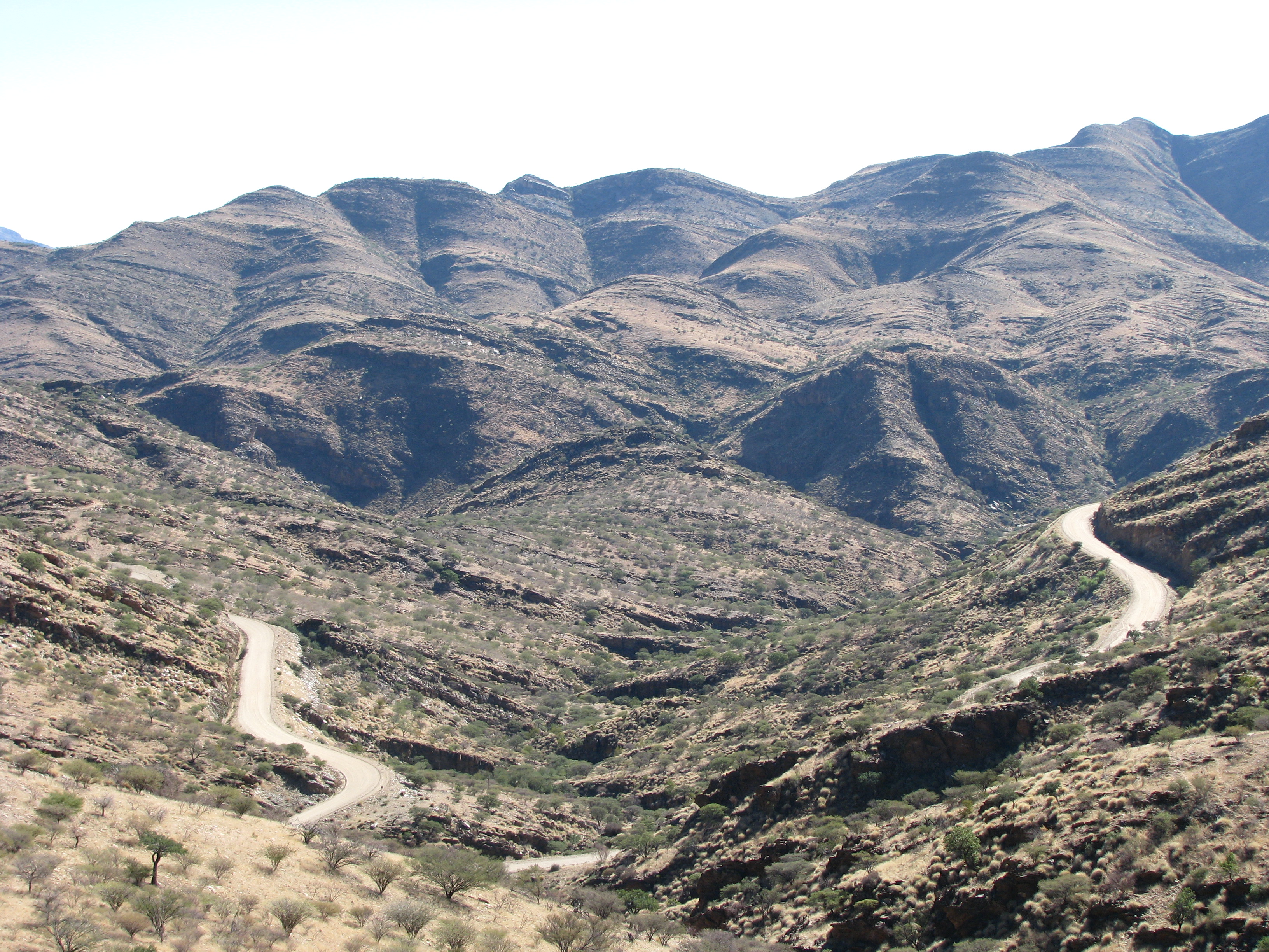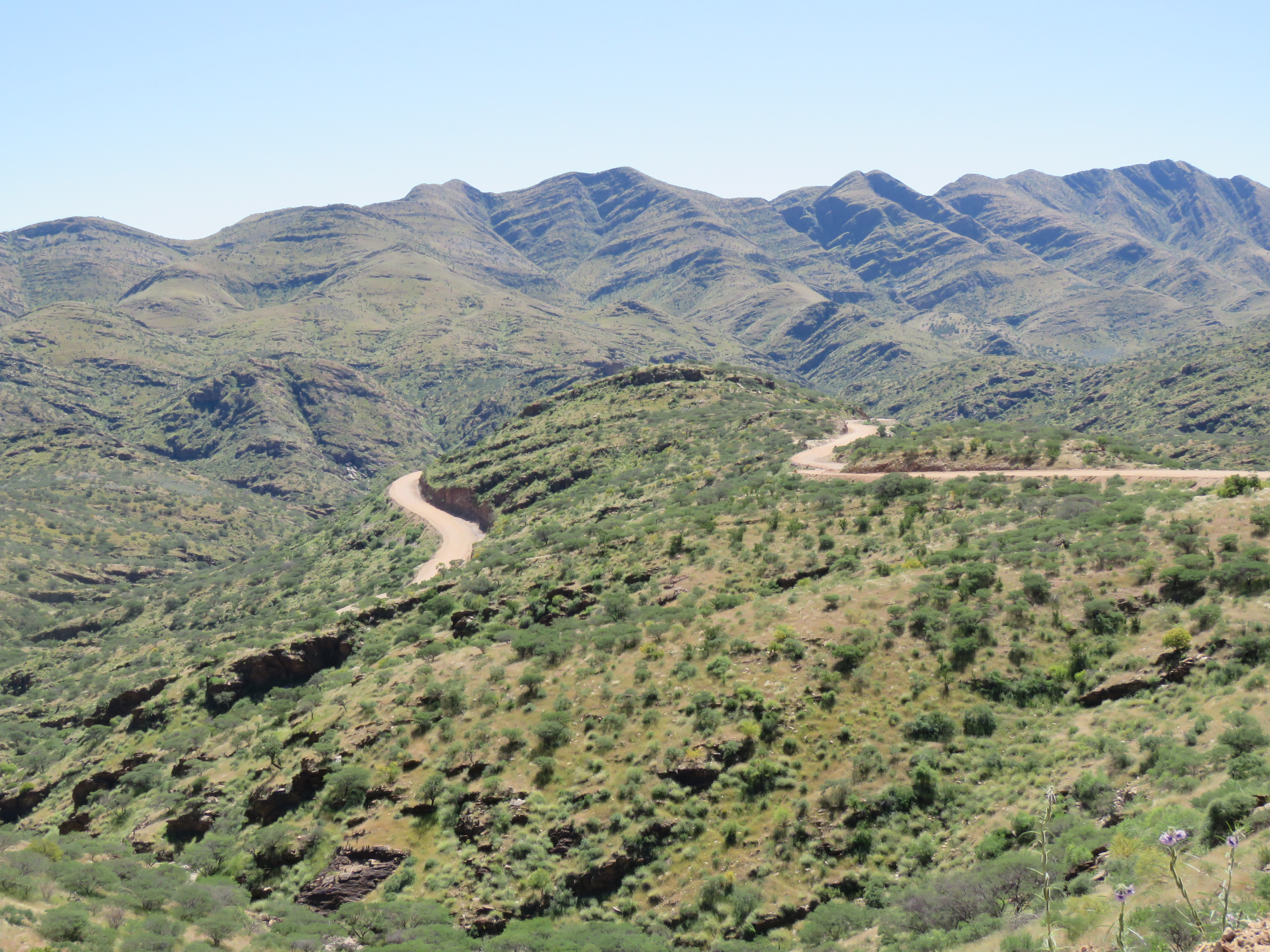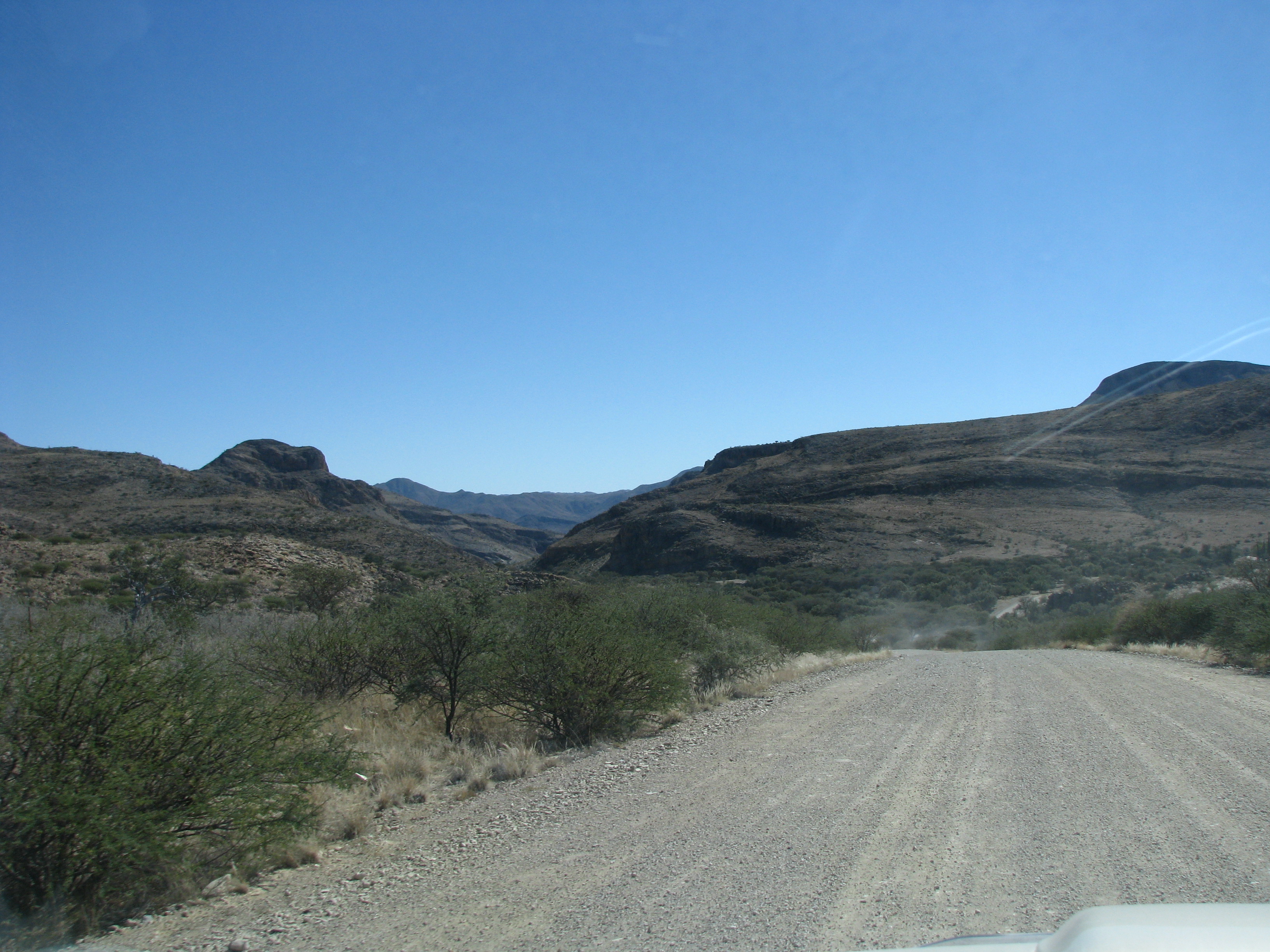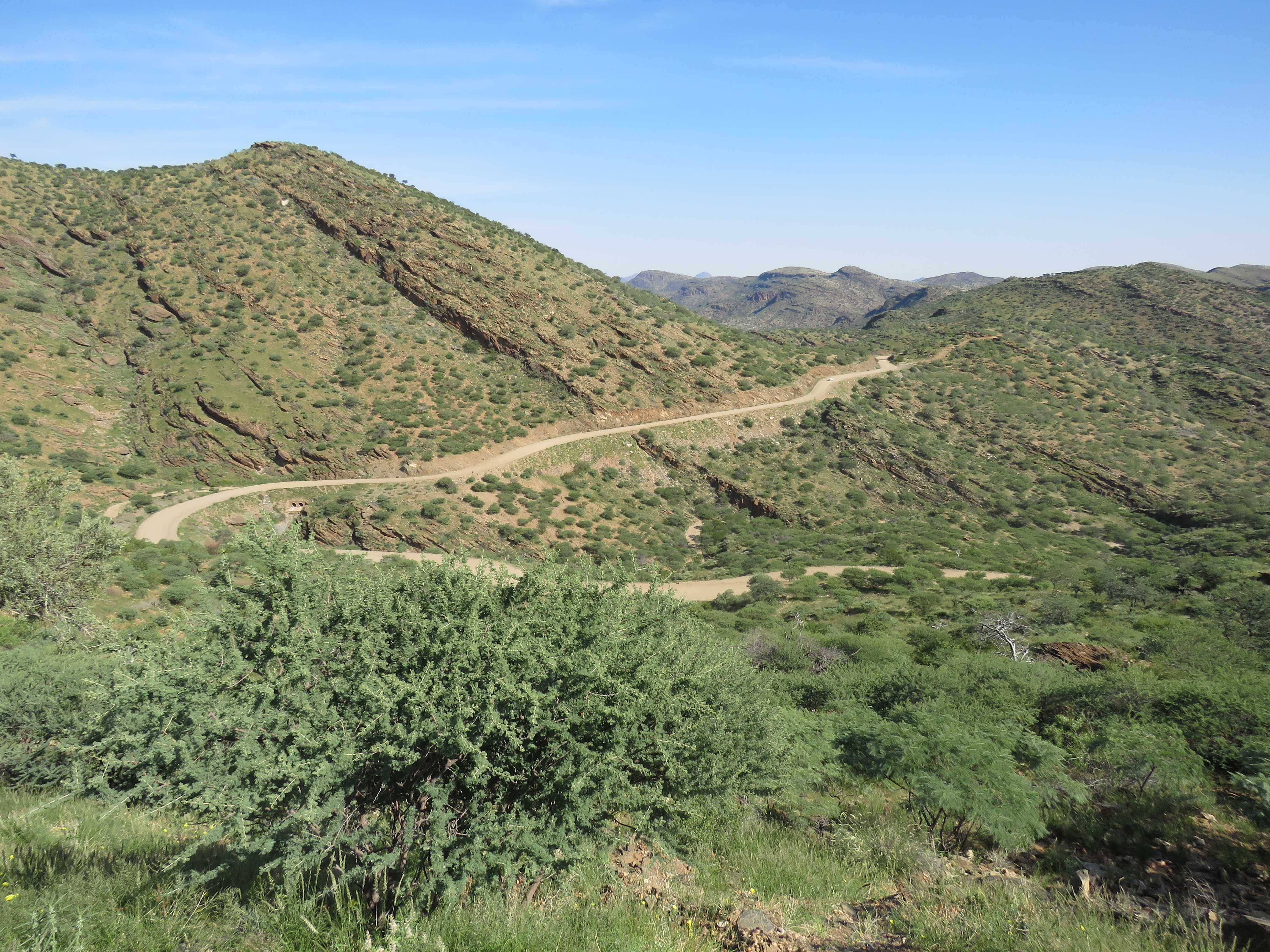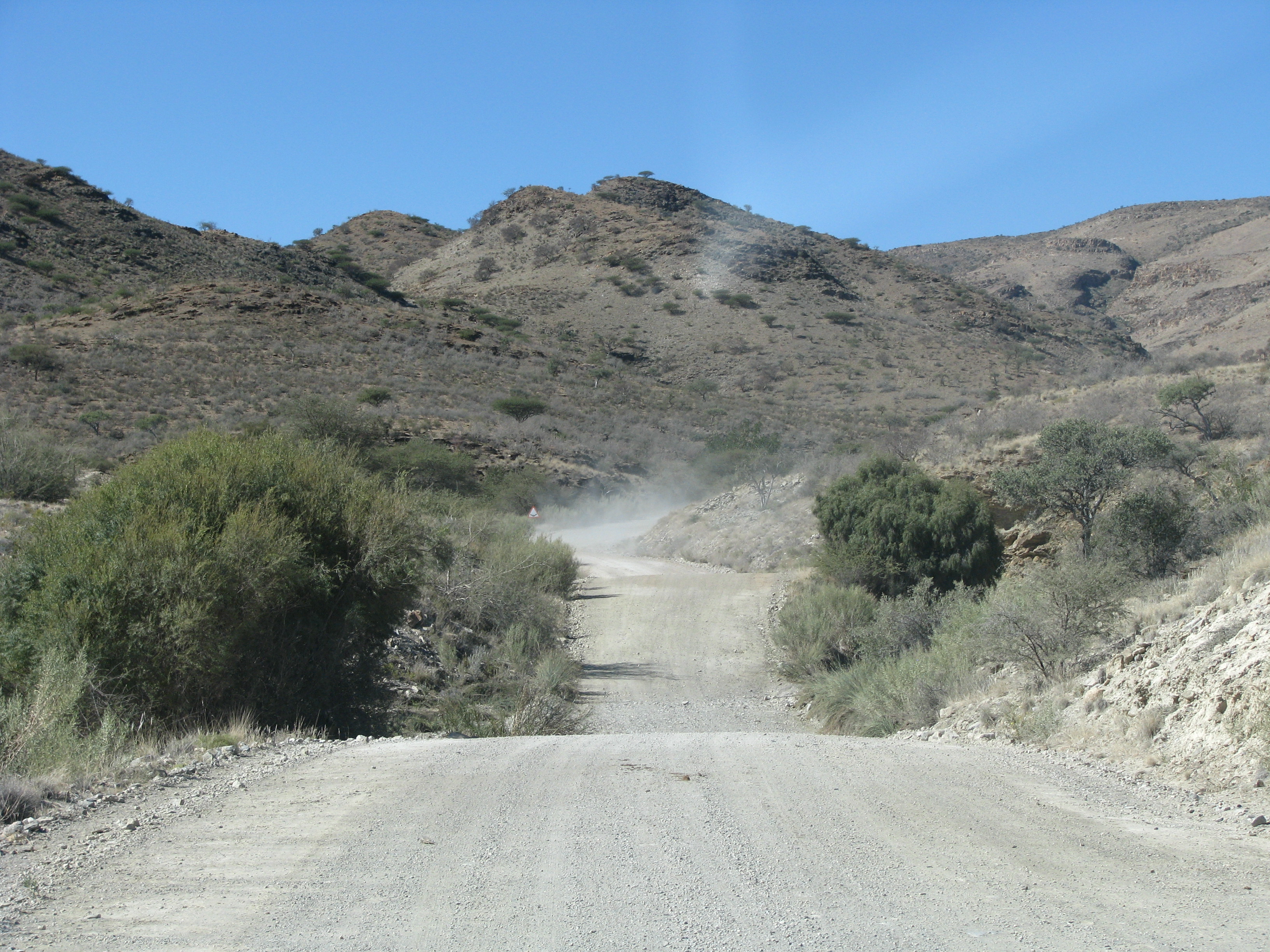 Soos Rooikappie vat ons die langpad Walvisbaai toe. Die korter pad (C14) lei mens tussen die woestyn en die Khomas Hochland oor die Kuisebrivier na Walvis. Op die pad is die Gaubpas en word baie deur die toeriste van Swakob na Sossusvlei gebruik. Van Weltevredeplaas ry ons met die C19 tot ‘n paar kilometers voor Solitaire waar ons regs draai tot by die C14. Hier draai ons links en kry die D1261 waar ons weer regs draai om met die Remhoogtepas tot op die Khomas Hochland te ry.