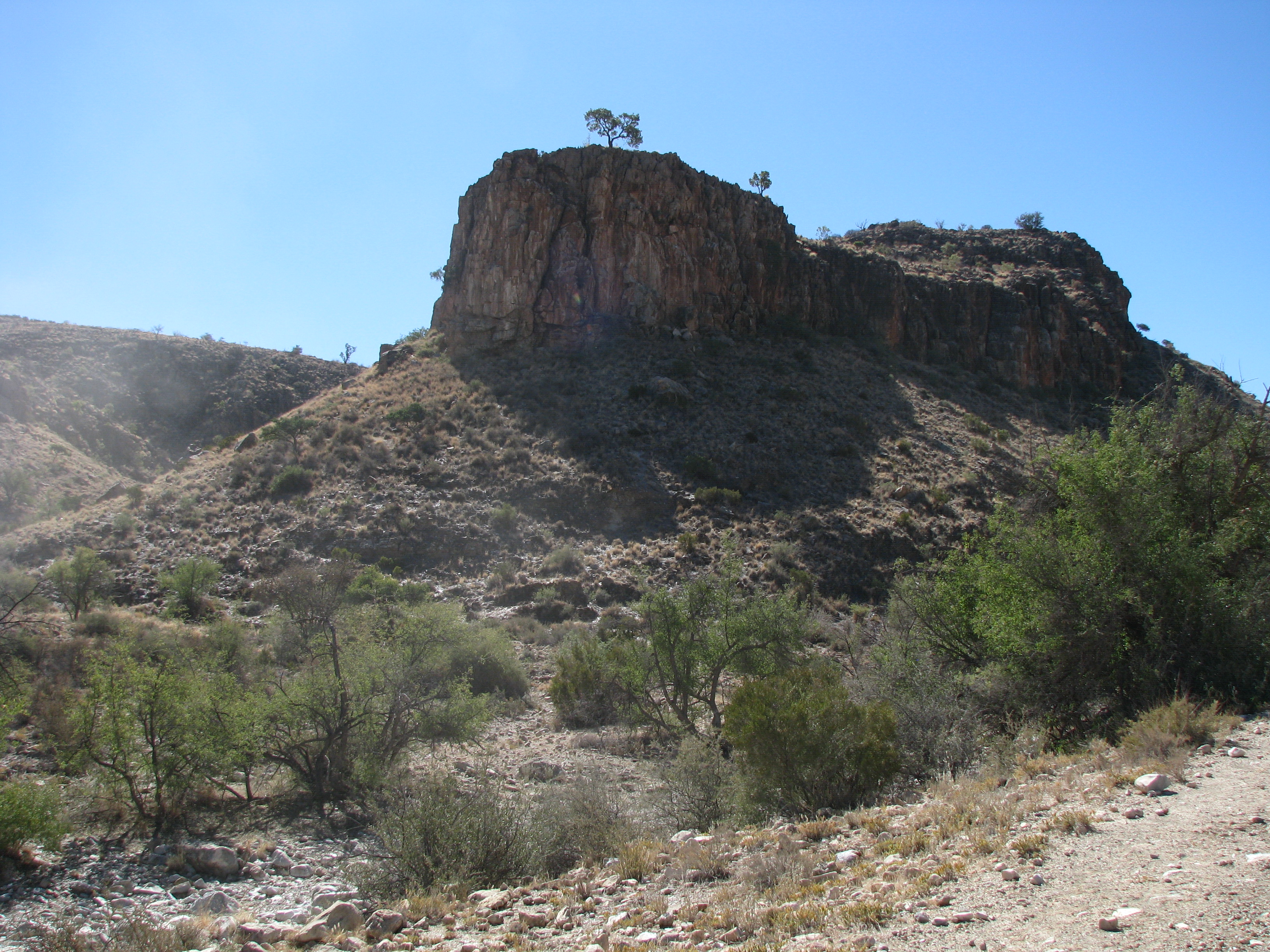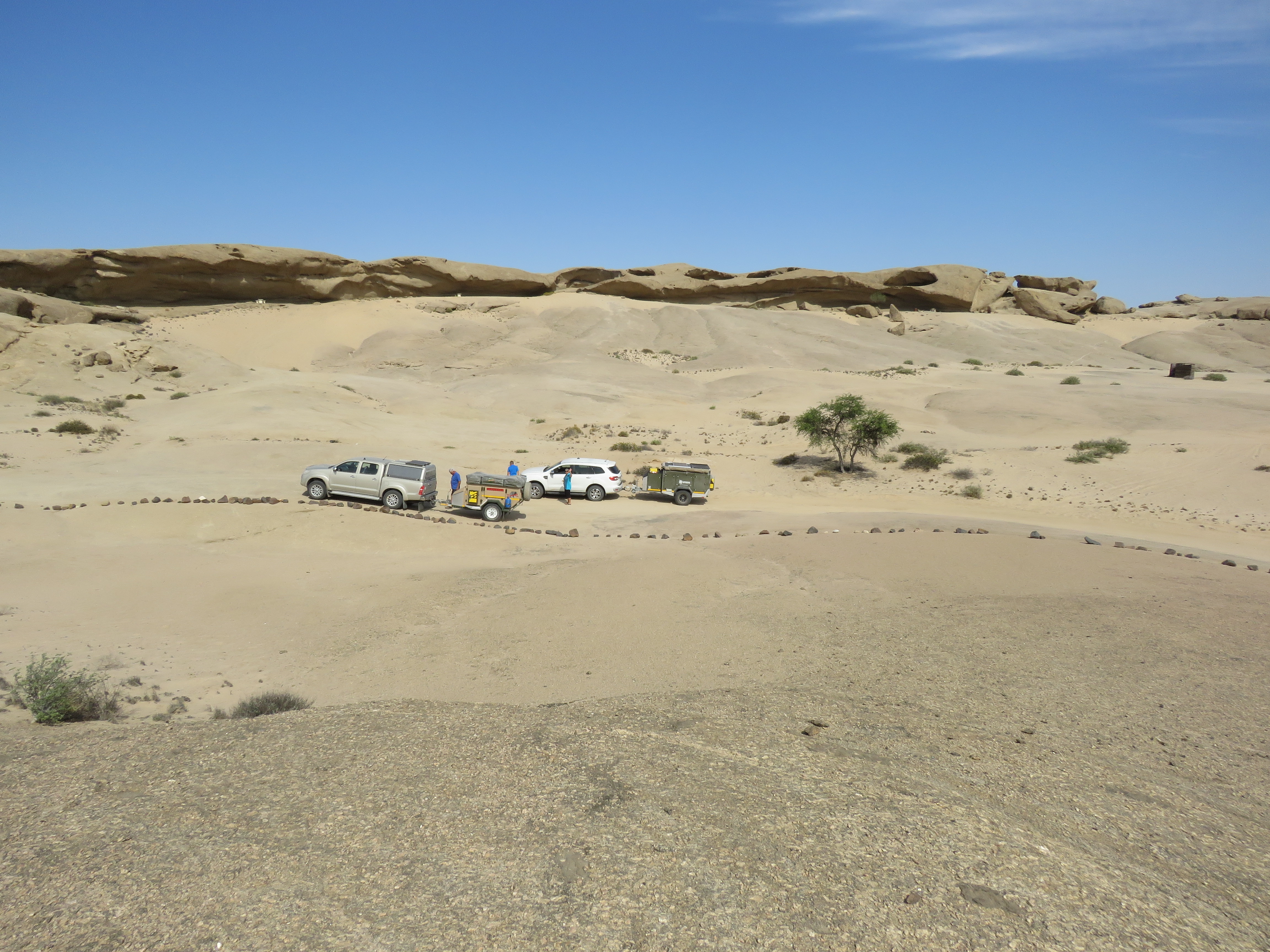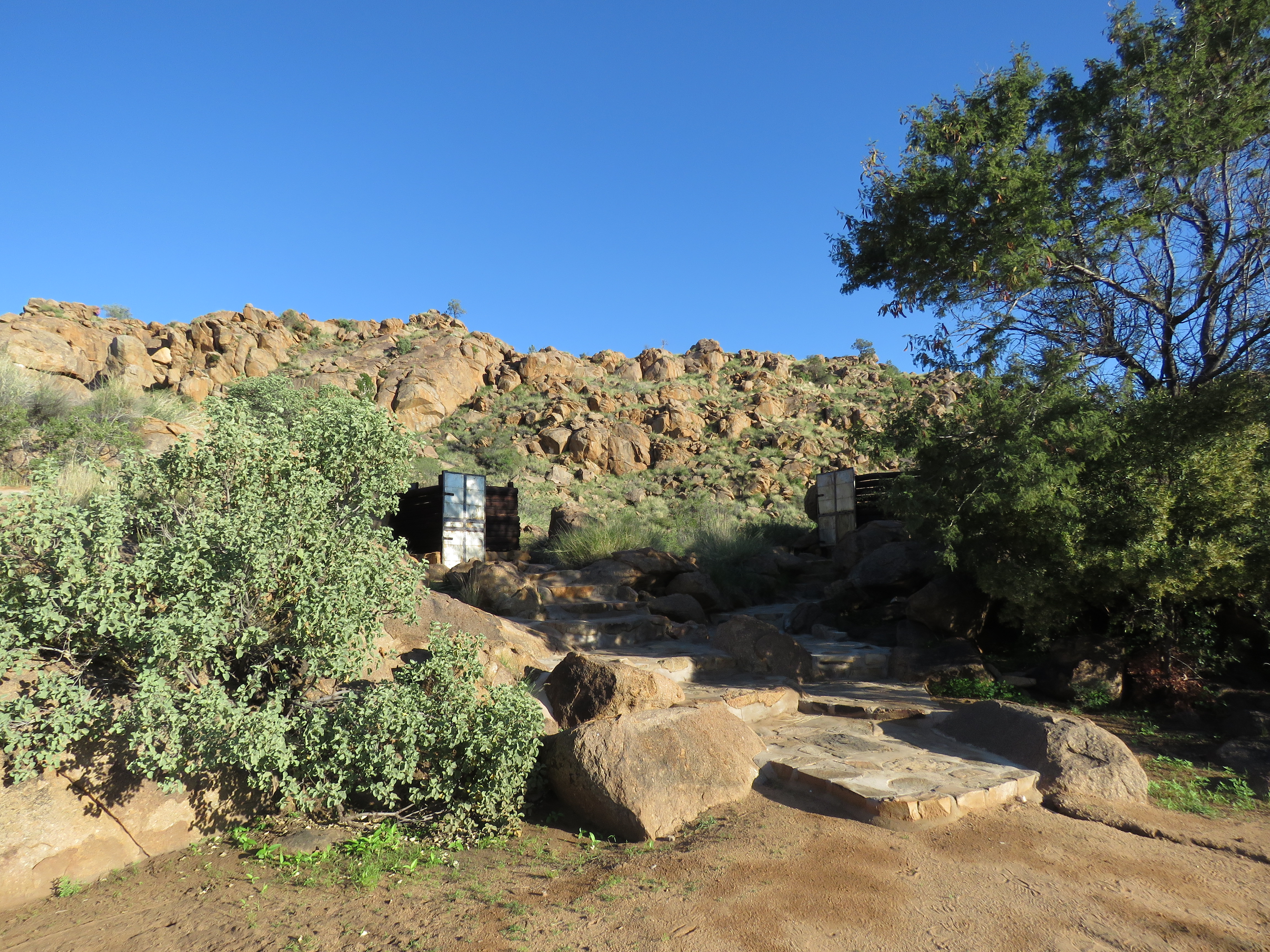 Ongerep, swak geriewe, bring jou eie water. Ons besluit om Noord-oos (aan die woestynkant) van die berg op te slaan. Die voordeel is dat mens vroegmiddag al skadu het. En agter die berg skuil as die wind van die see (wes) af kom, maar as hy draai en uit die woestyn kom, kan hy jou rondruk.