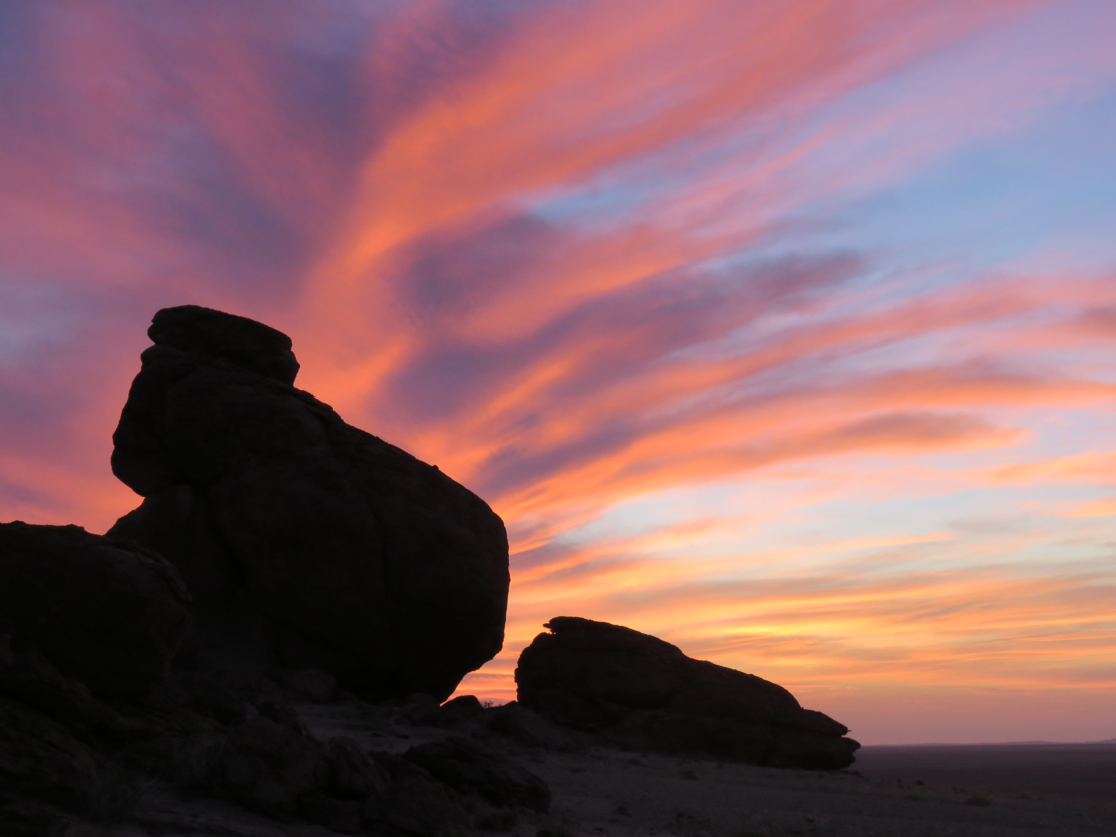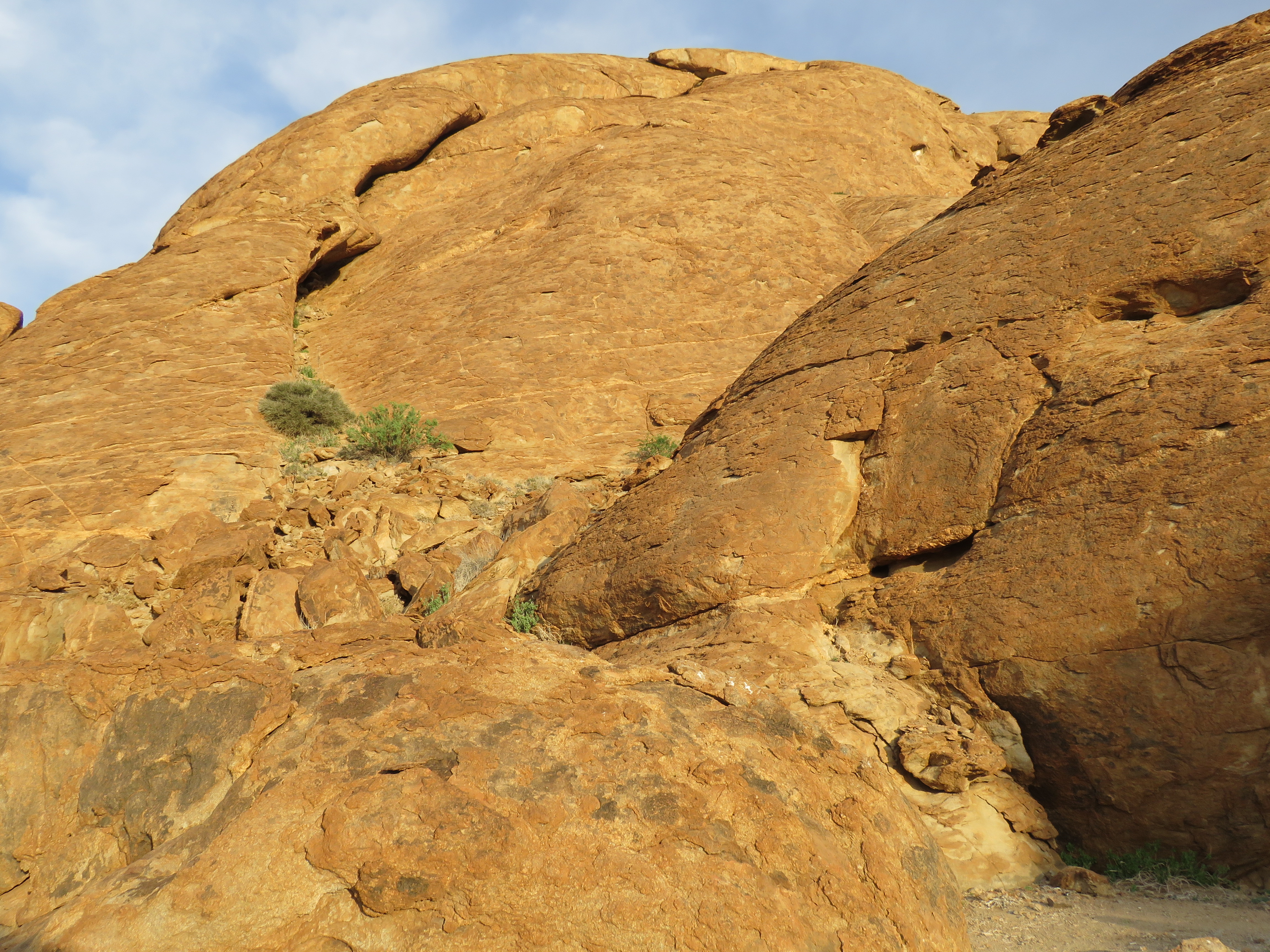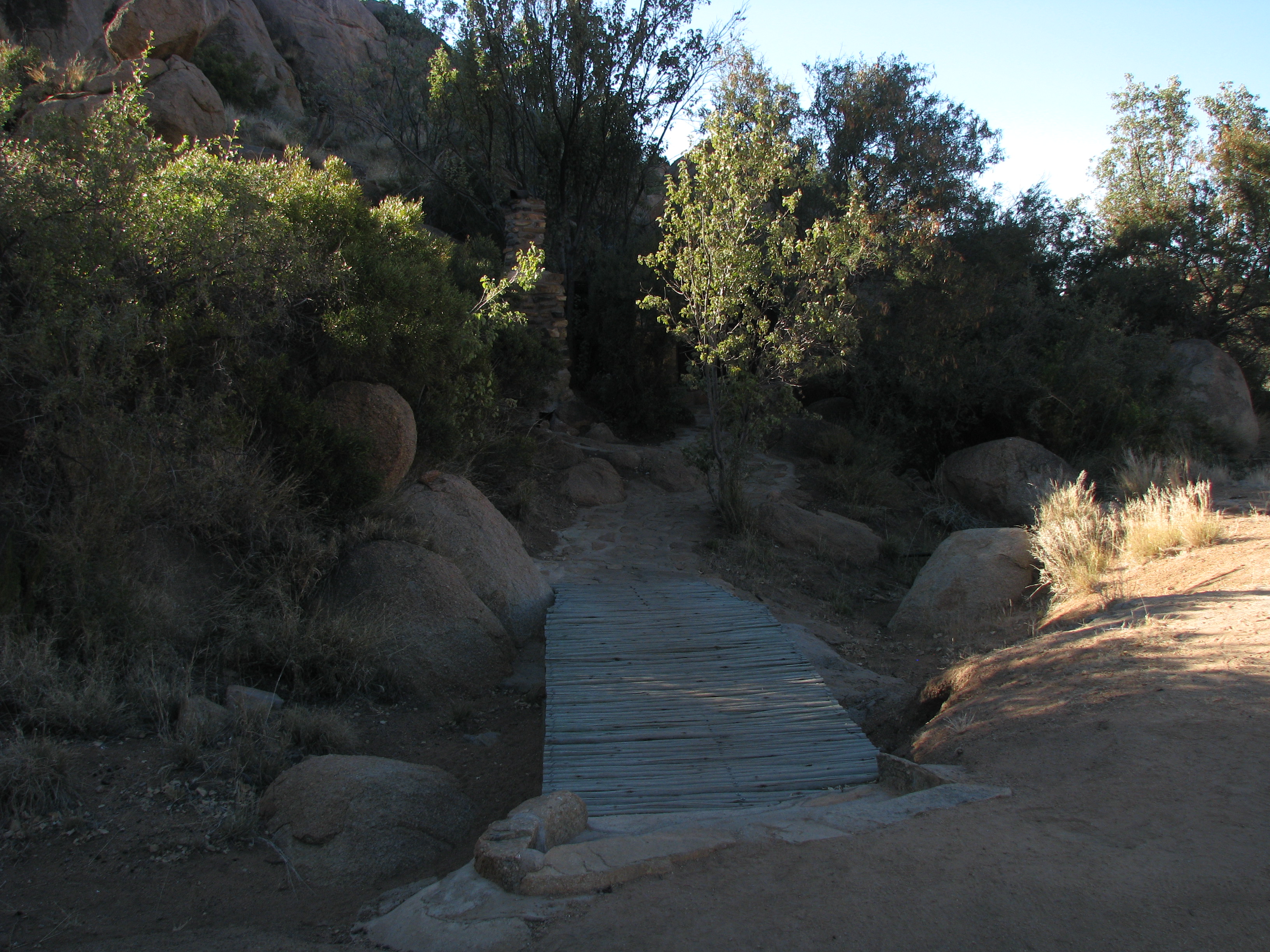 Ongerep, swak geriewe, bring jou eie water. Ons besluit om Noord-oos (aan die woestynkant) van die berg op te slaan. Die voordeel is dat mens vroegmiddag al skadu het. En agter die berg skuil as die wind van die see (wes) af kom, maar as hy draai en uit die woestyn kom, kan hy jou rondruk.