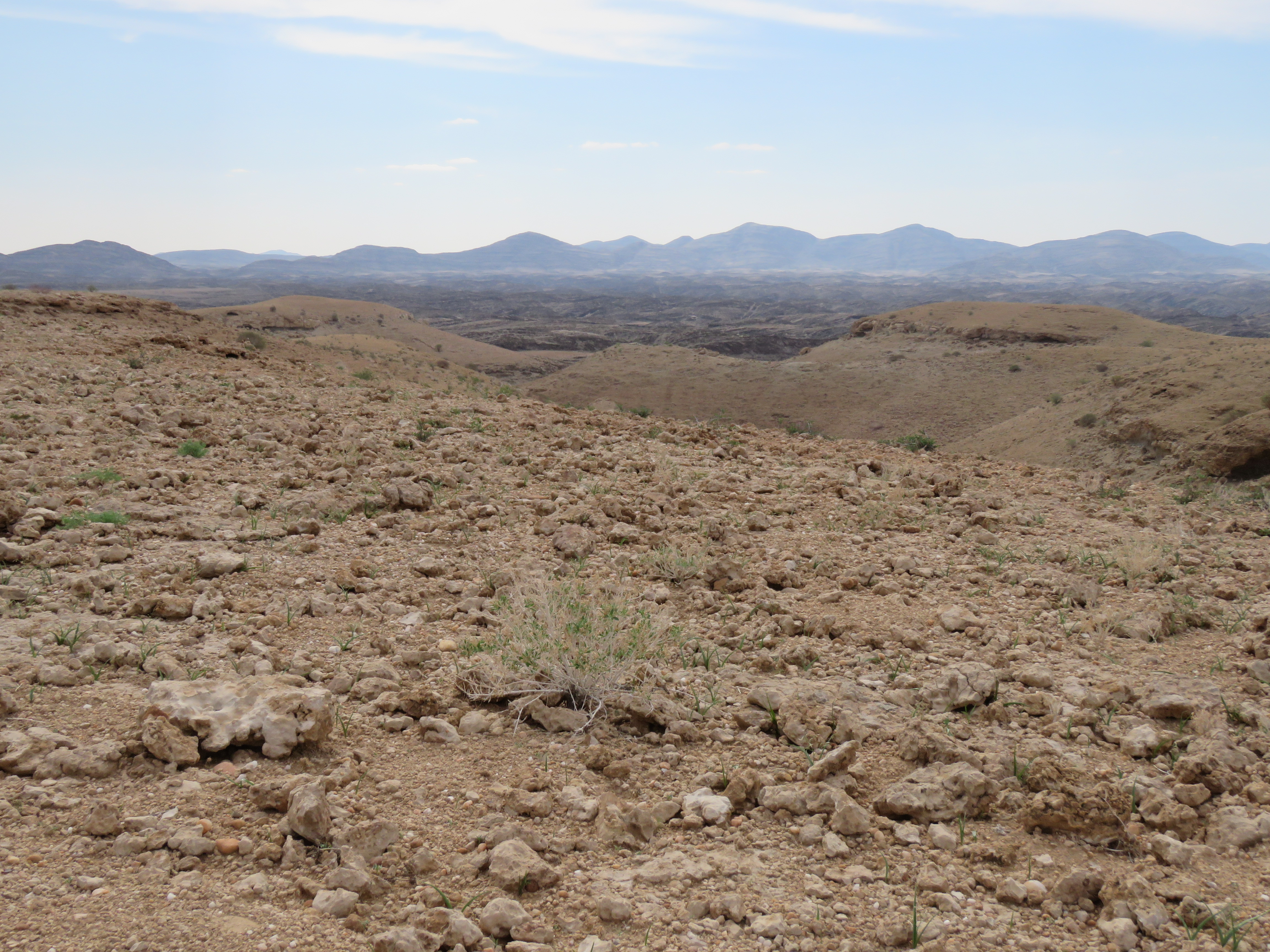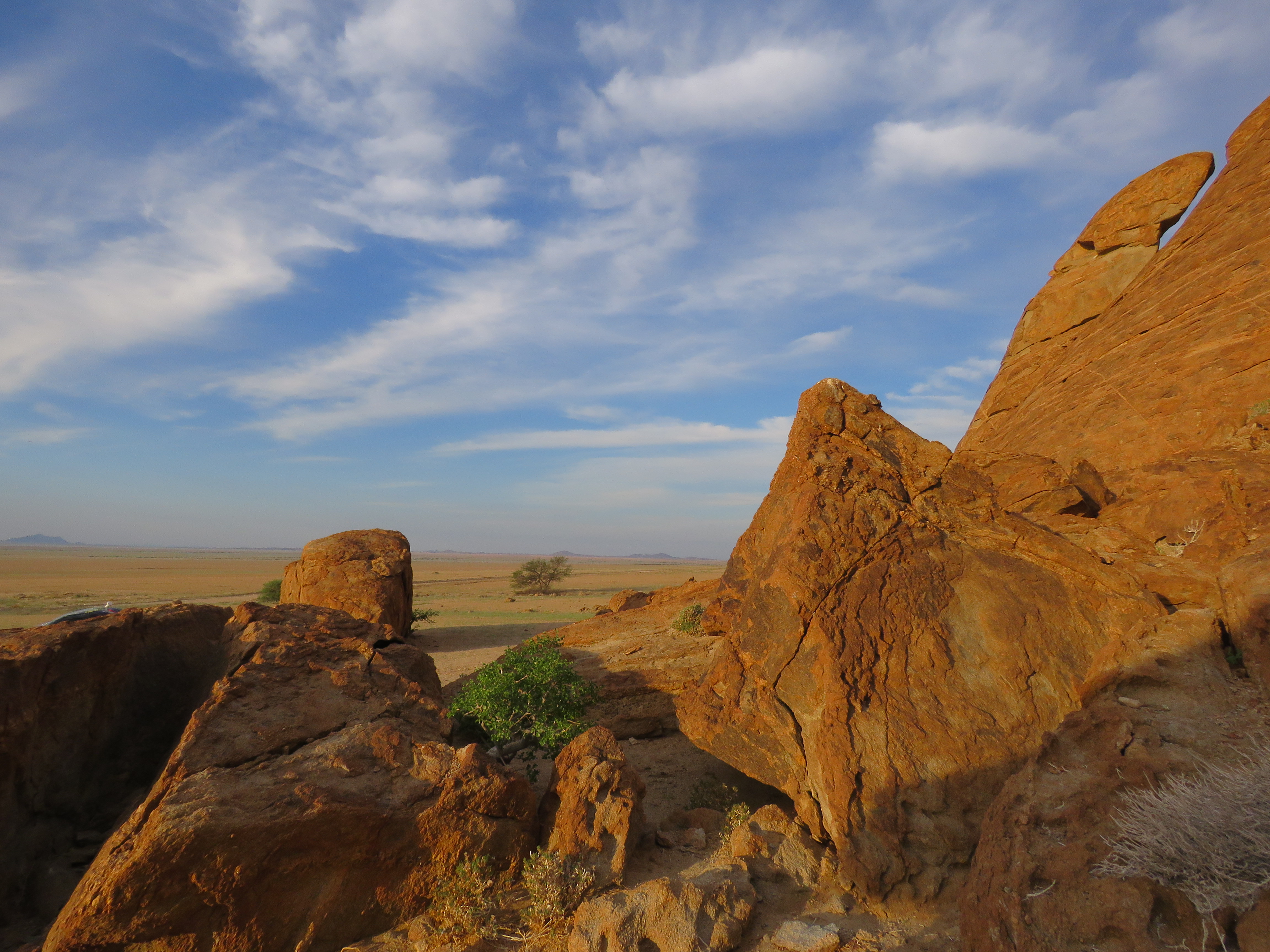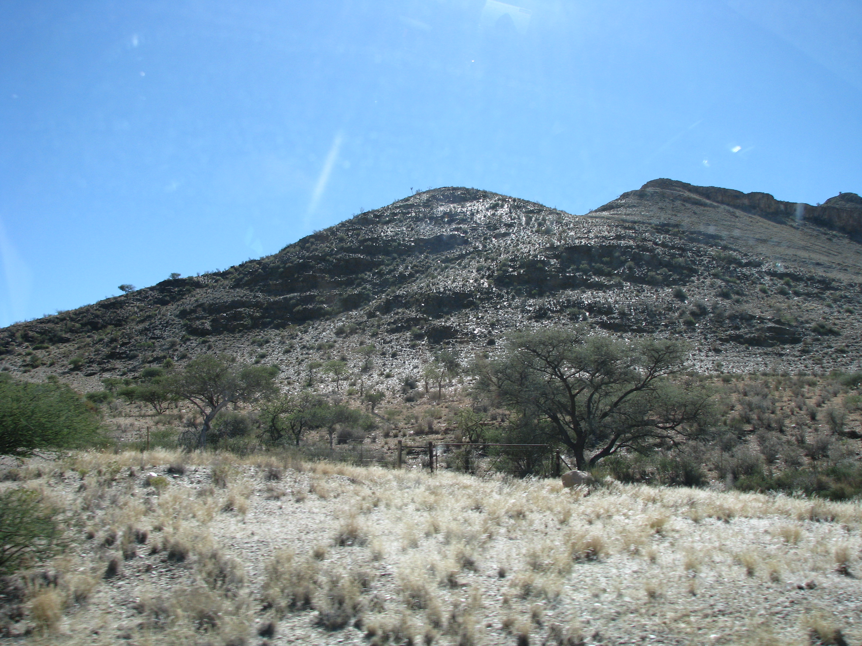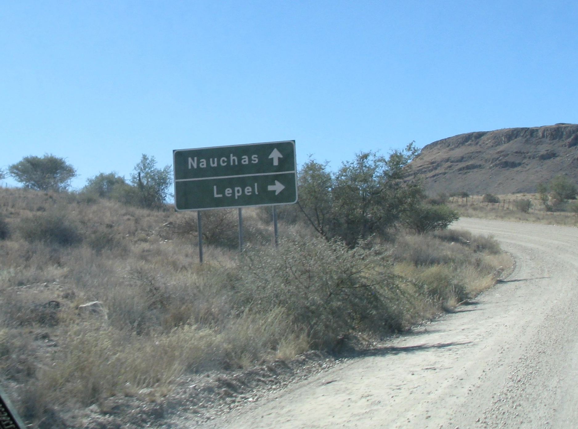 Op die Khomas Hochland gaan ons by plekke verby met name soos Achab, Lepel, en by Nauchas draai die pad na Namibgrens gasteplaas. Hier het ons nou al twee keer lekker gekuier. Hulle kampterrein is iets besonders en ‘n besoek werd. Hier het ons vir ‘n mak sebra weggejaag, as hy by jou voertuig kom byt hy die spieeltjies of net waar hy bytplek kry. Sy ma is dood toe hy nog ‘n vulletjie was en hy is met ‘n bottel op die plaas groot gemaak.