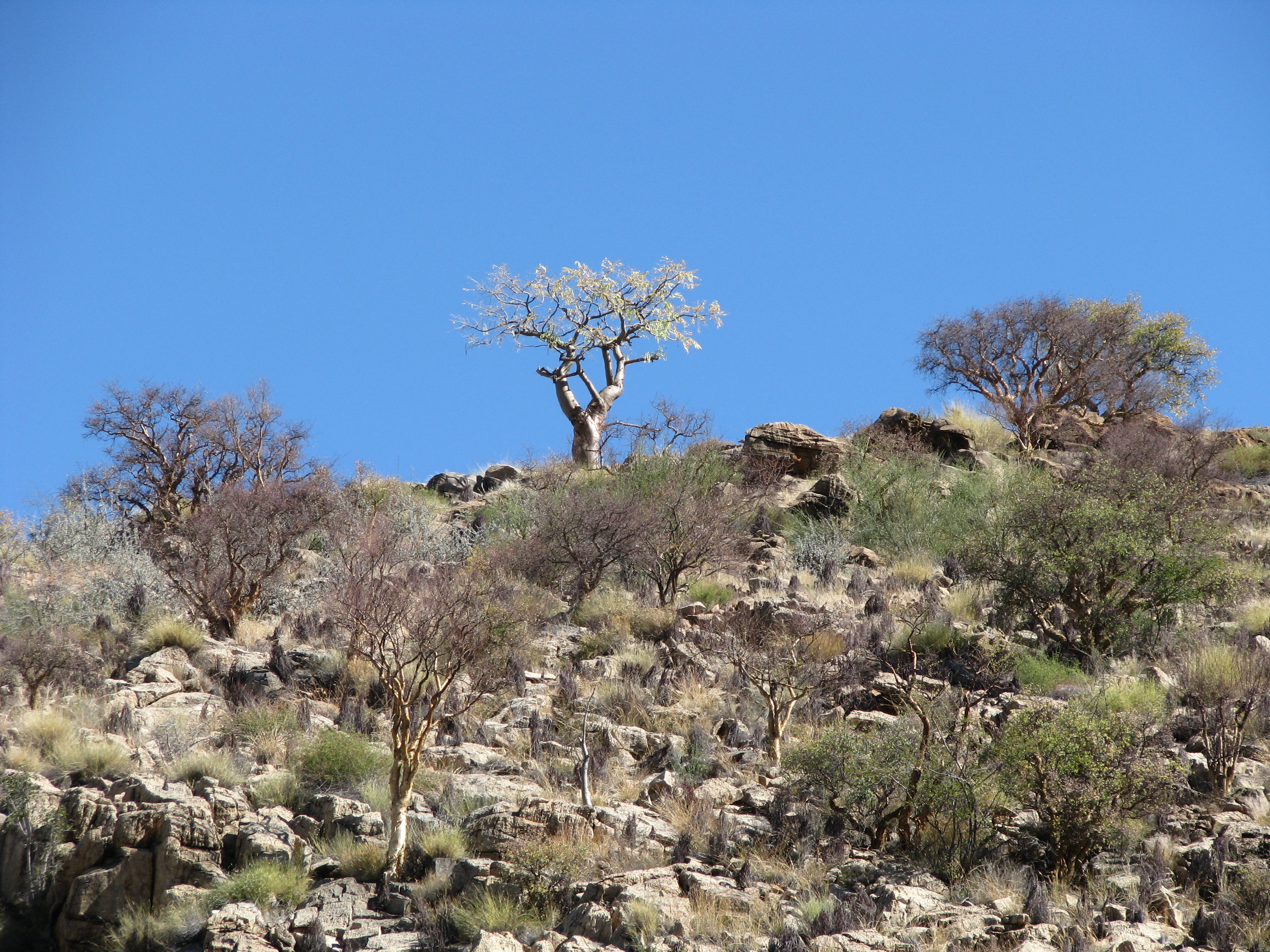 Die moeilikste deel van die Remhoogtepas is ook geplavei. Dis ‘n plesier om daar te ry. Mens kan sien dit het erg verspoel, maar ons ry stadig, geniet dit en is saam met die boere dankbaar. Daar is rivierlopies met die mooiste bome. Teen die koppe is bome met ligbruin basse wat lyk of hulle afdop. Hier groei die moringabome ook welig. ‘n Gesin vlakvarke draf fluks voor ons oor die pad, almal se stertjies regop.
