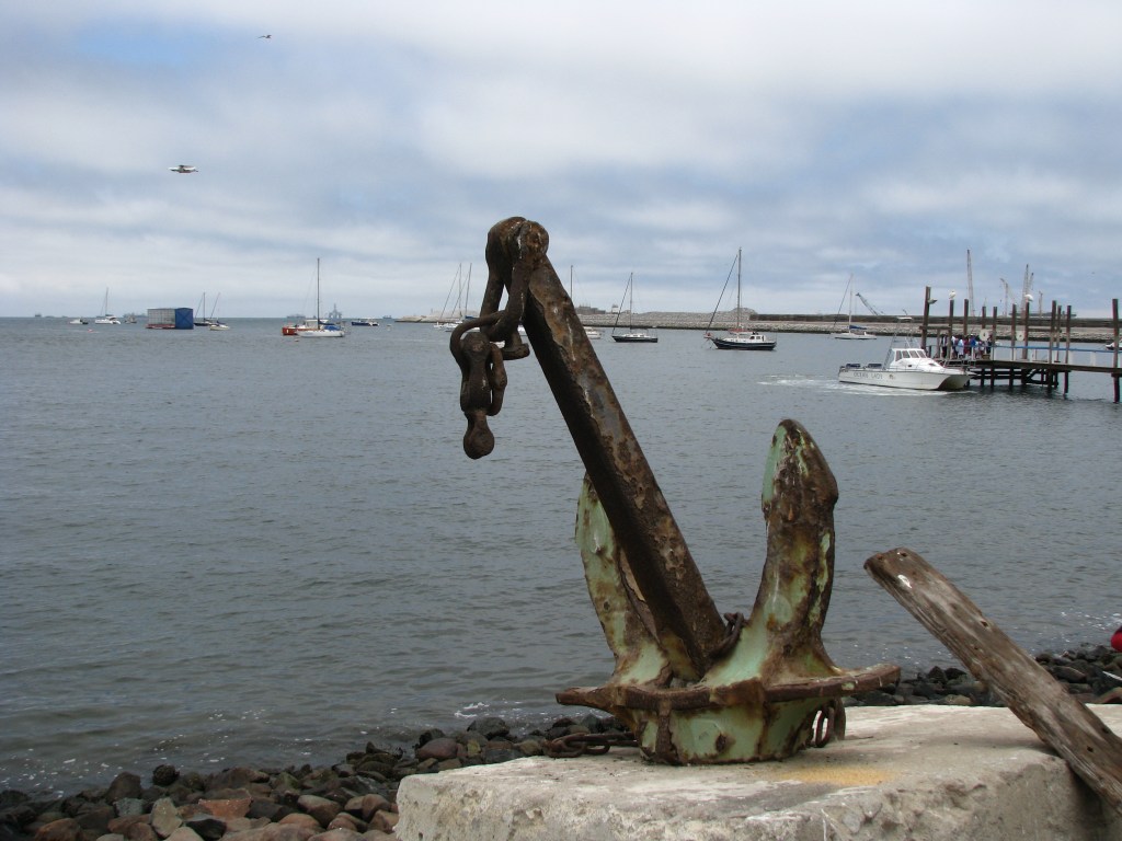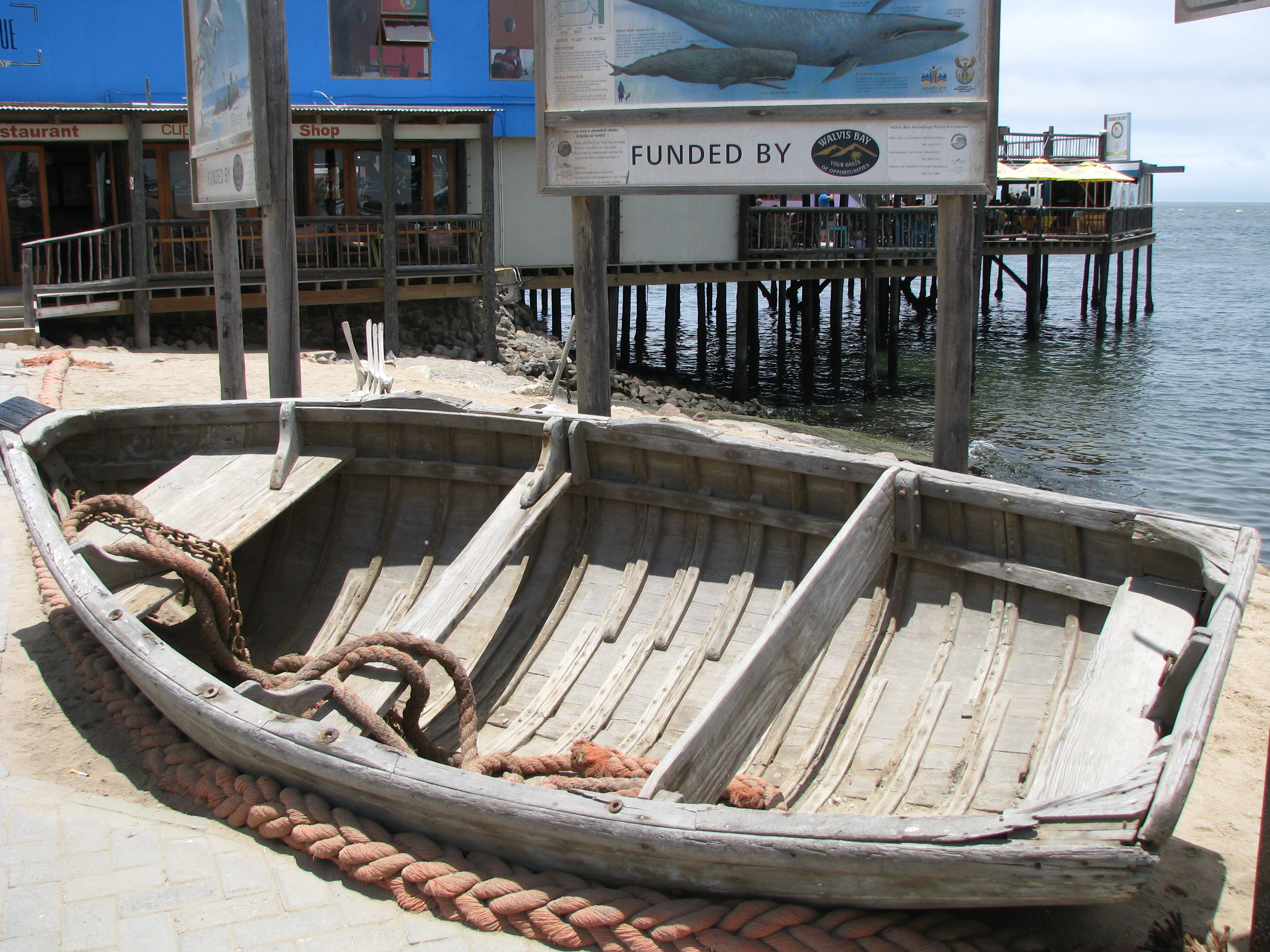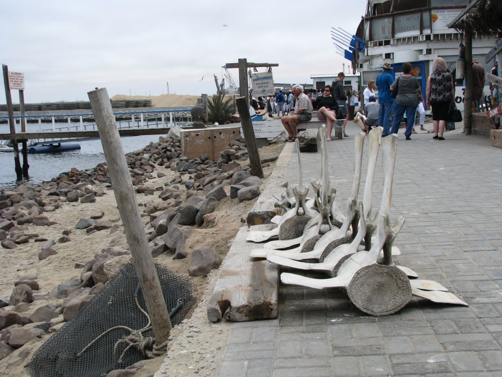 Volgens Wikipedia is Walvisbaai ‘n natuurlike veilige diepwaterhawe vir skepe wat deur Pelican Point skiereiland gevorm word. Ryk plankton en seewier in die water lok groot getalle suidelike walvisse wat weer walvisjagters en vissersvaartuie lok. Die hawe was ook ‘n diepwater-ankerplek vir die Suid Afrikaanse vloot se skepe en sedert die middel 70’s is uraan van Rössing uitgevoer.