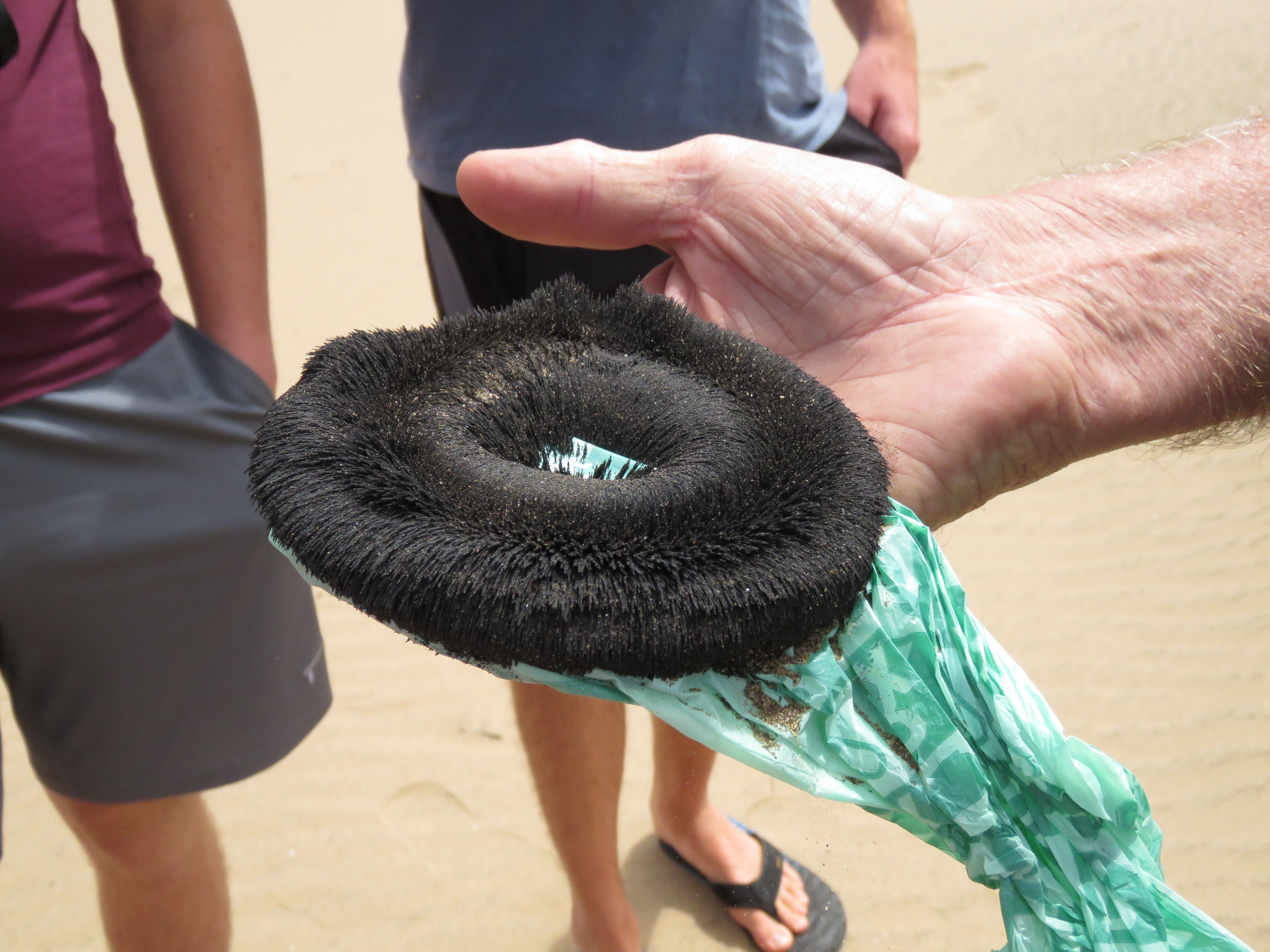 Remmie wys ook vir ons hoeveel yster daar in die sand is. Hy vryf ‘n magneet in die sand en siedaar, soos hare op ‘n hond pak die ysterdeeltjies aan die magneet.