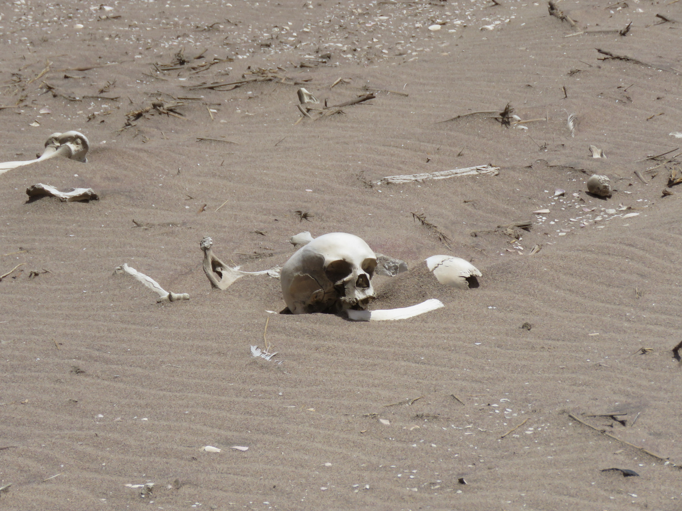 Hier is selfs tekens van mense wat ‘n bestaan probeer maak het. Hout vissershuisies en selfs ‘n kopbeen (wat sal sy storie wees?) wat oopgewaai het.