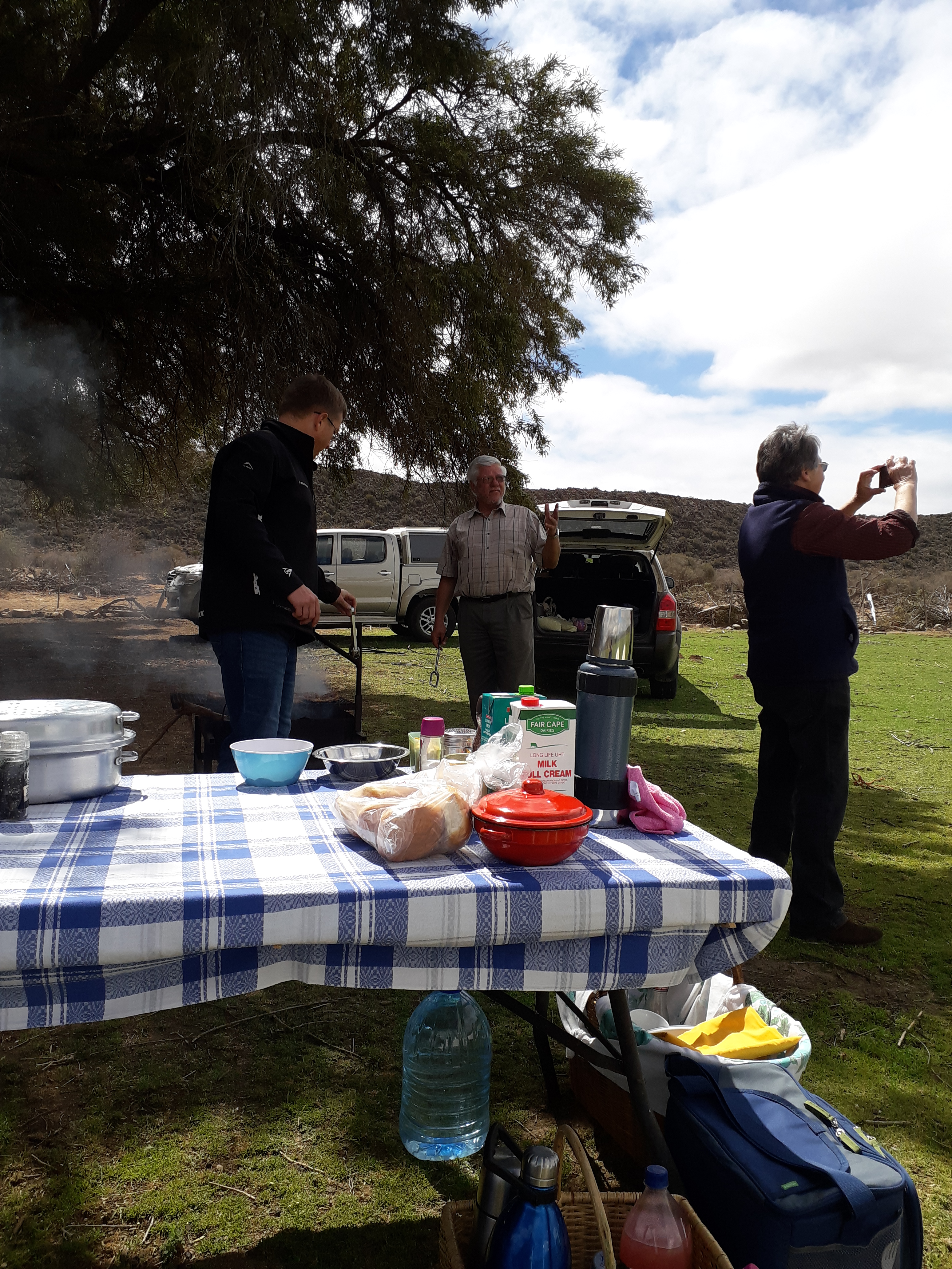 Soms drink ons tee onder die Karooboerboon, ander kere braai ons in die skaapkampies op die groengras of ons maak ontbyt by die Gwarrieboskamp.