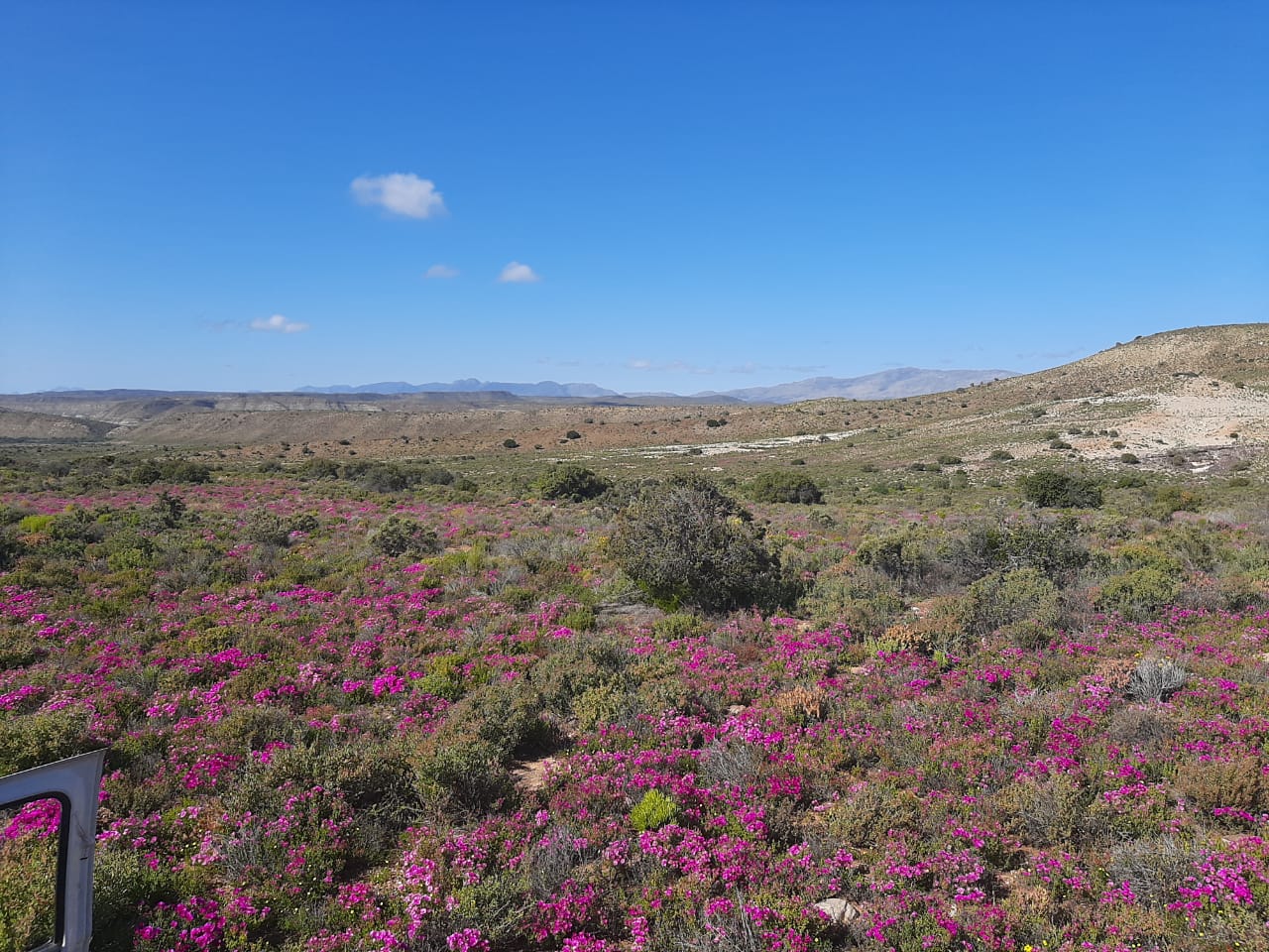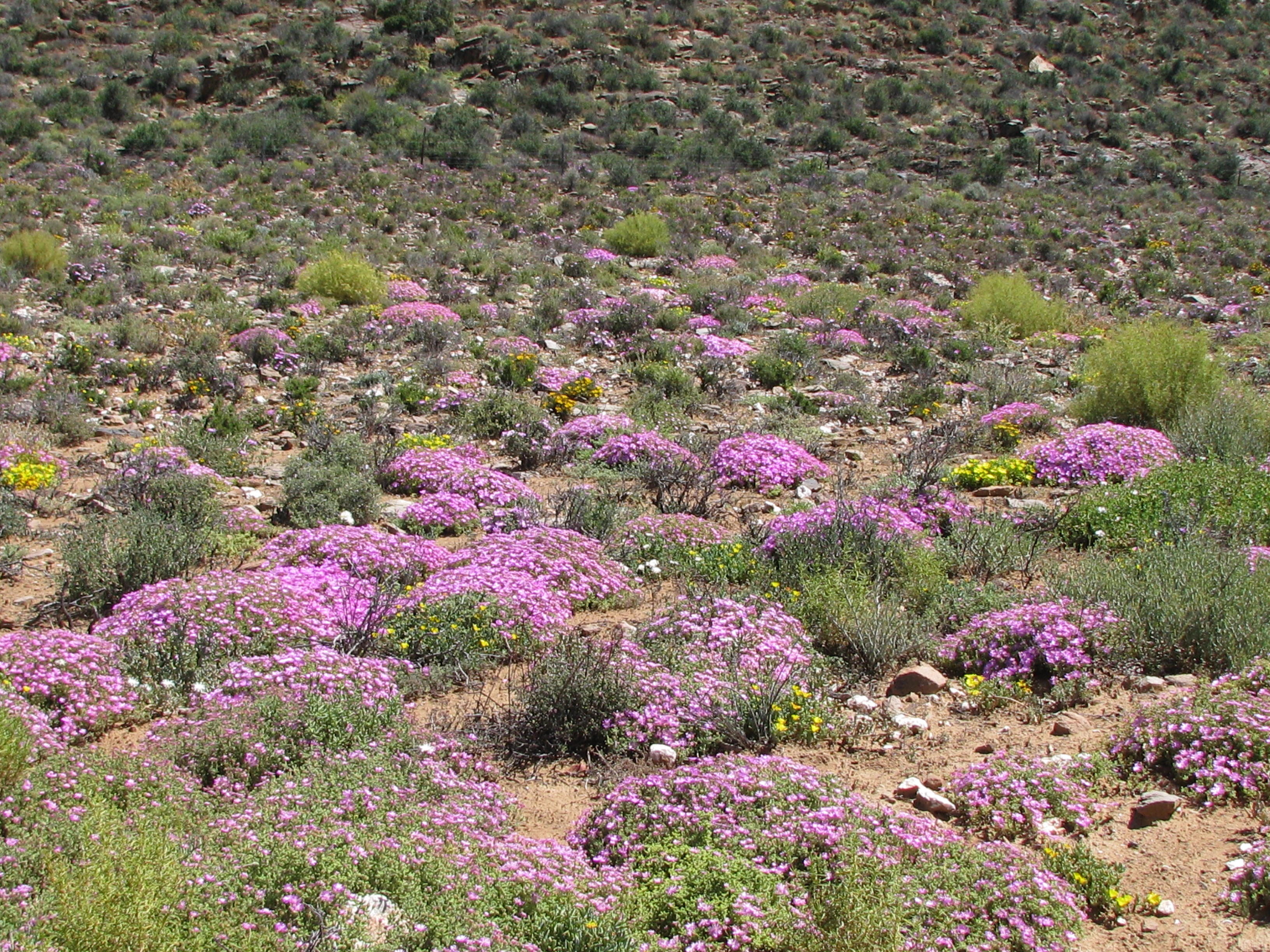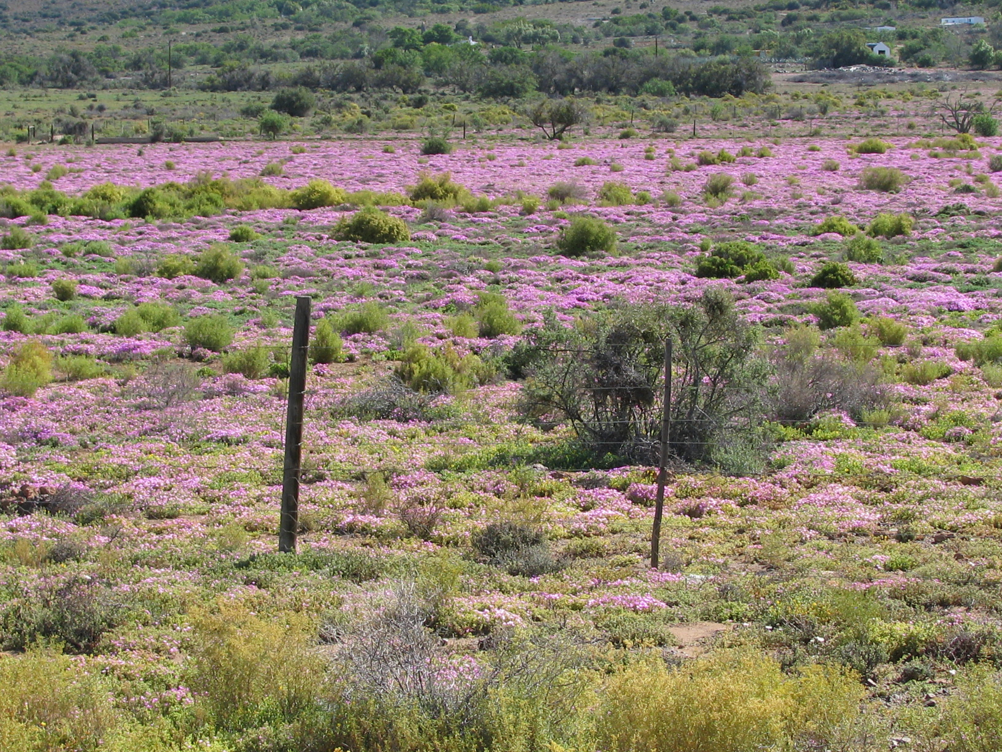 So ver as die oog kan sien verkleur die velde en rante pers van die vygies wat uitbundig blom.