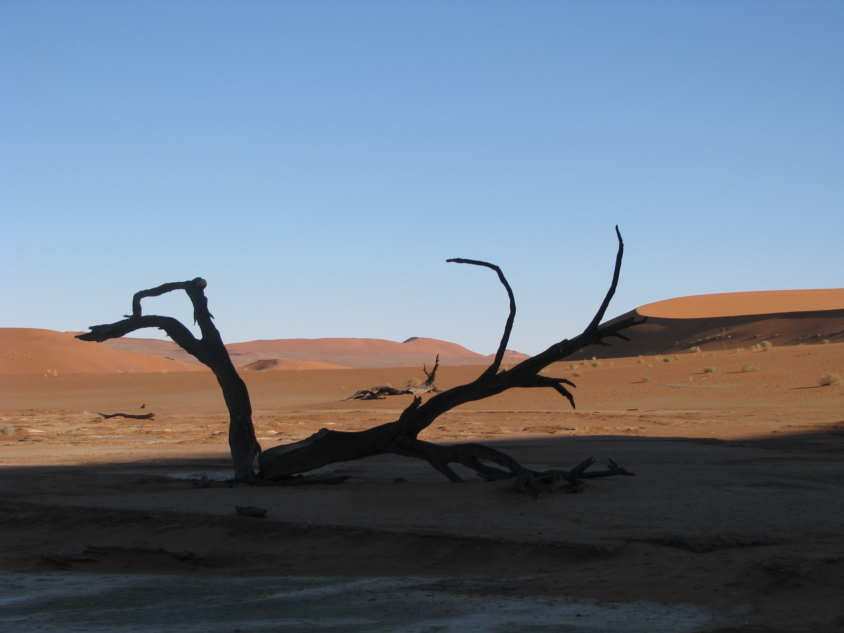 By Sossusvlei en die Dooievlei, in die Tsauchabrivier sorg hulle vir die skouspel van dooie bome.