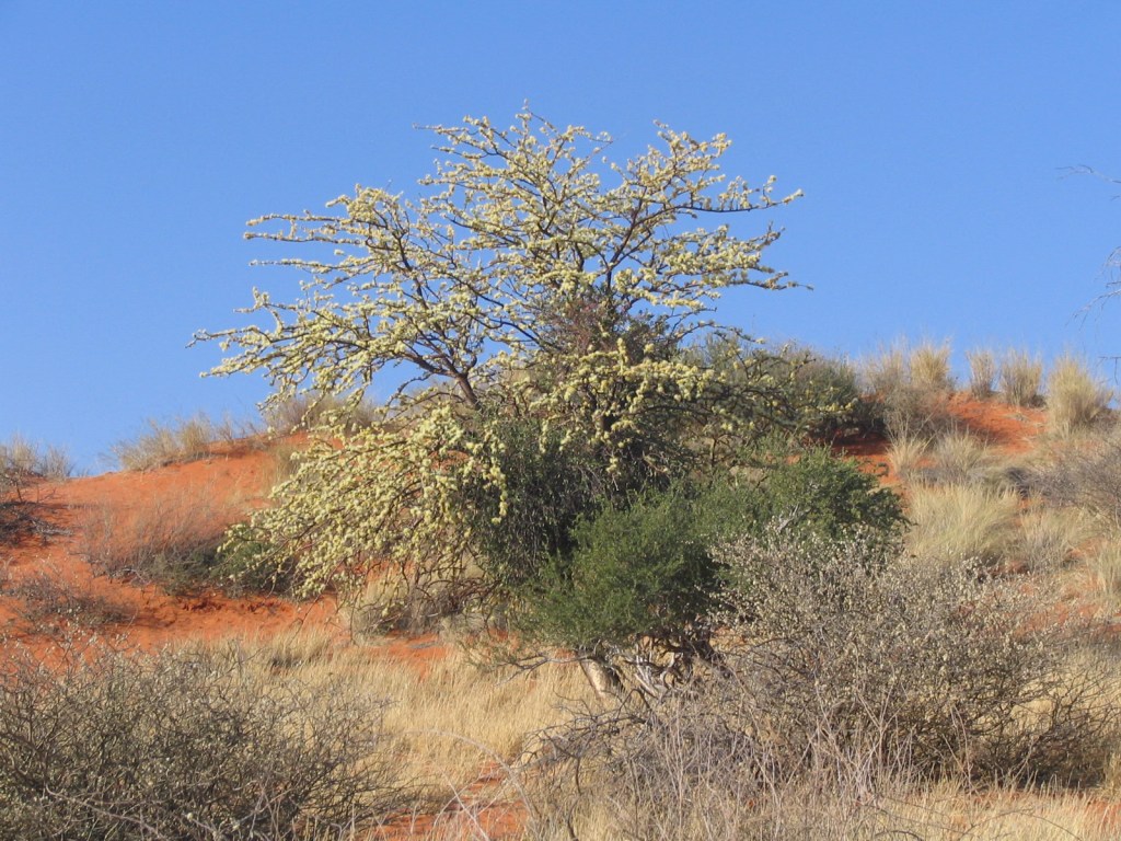 Die vaal !ja soos die Nama volk hom noem word selde ‘n groot boom. Dis dikwels ook maar net ‘n struik of ‘n klein boompie. Hy is oortek met lang grys dorings.