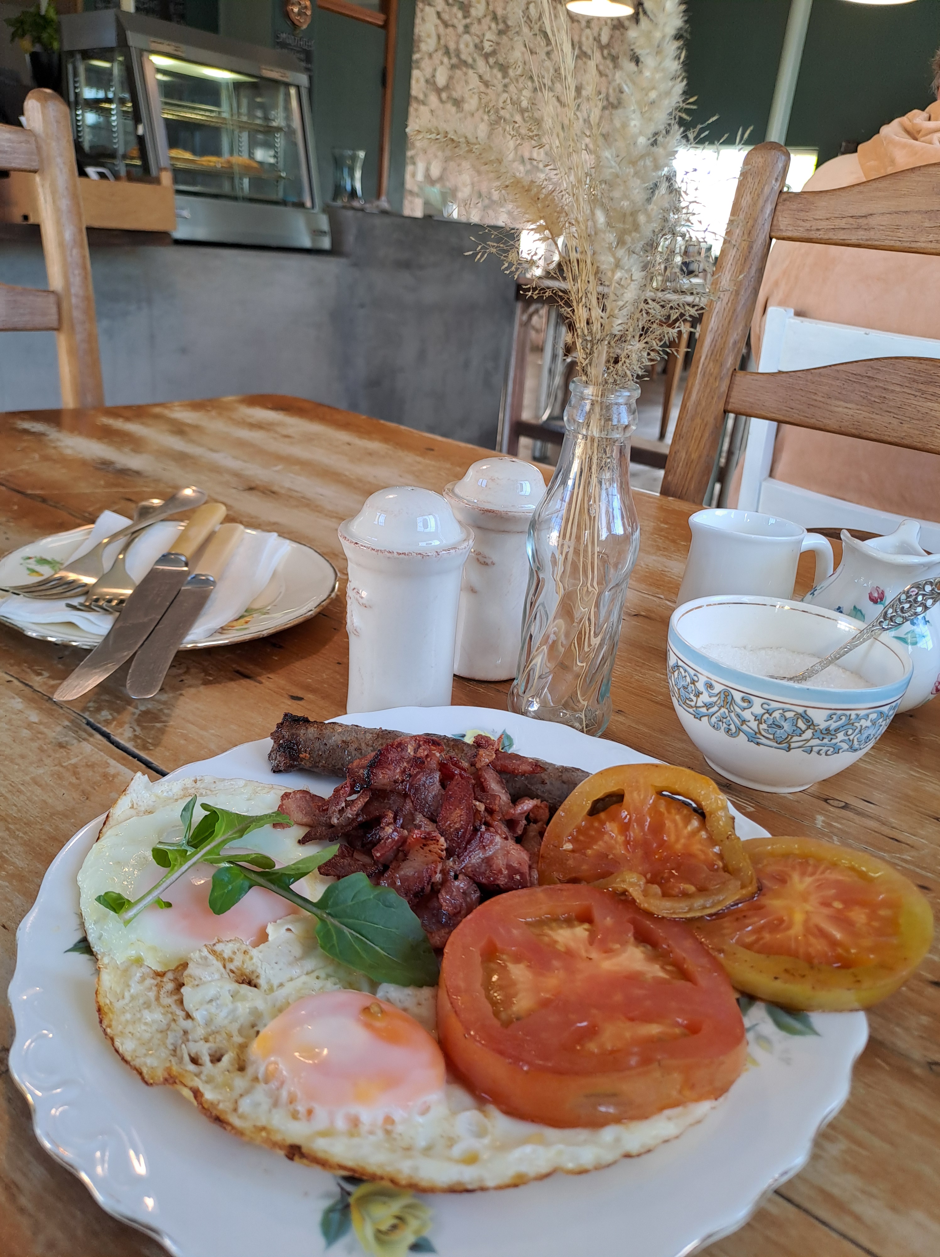 Hier kan jy ook ‘n lekker groot ontbyt bestel. Kry gerus die spyskaart, die mense kan kos maak.