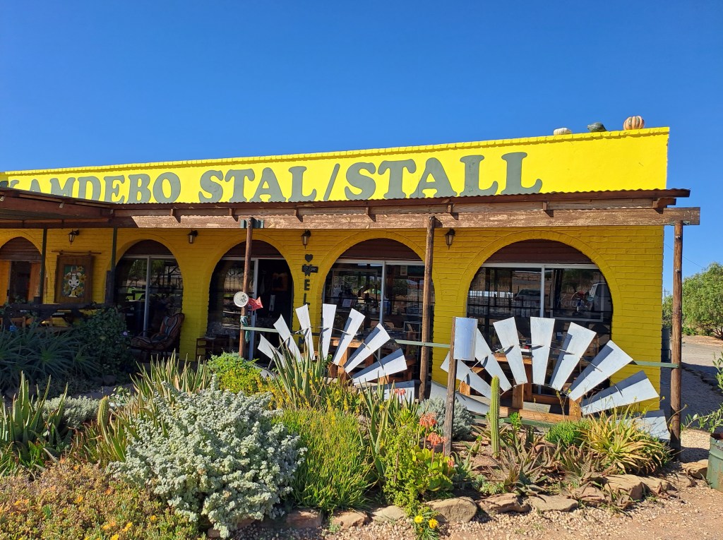 Stop hier vir lekker koffie en roosterkoek. Vra sommer bietjie uit oor die omgewing en kuier met ander wat ook bene rek. Dis nou ‘n ouwêreldse ervaring tussen blikke en oudhede.