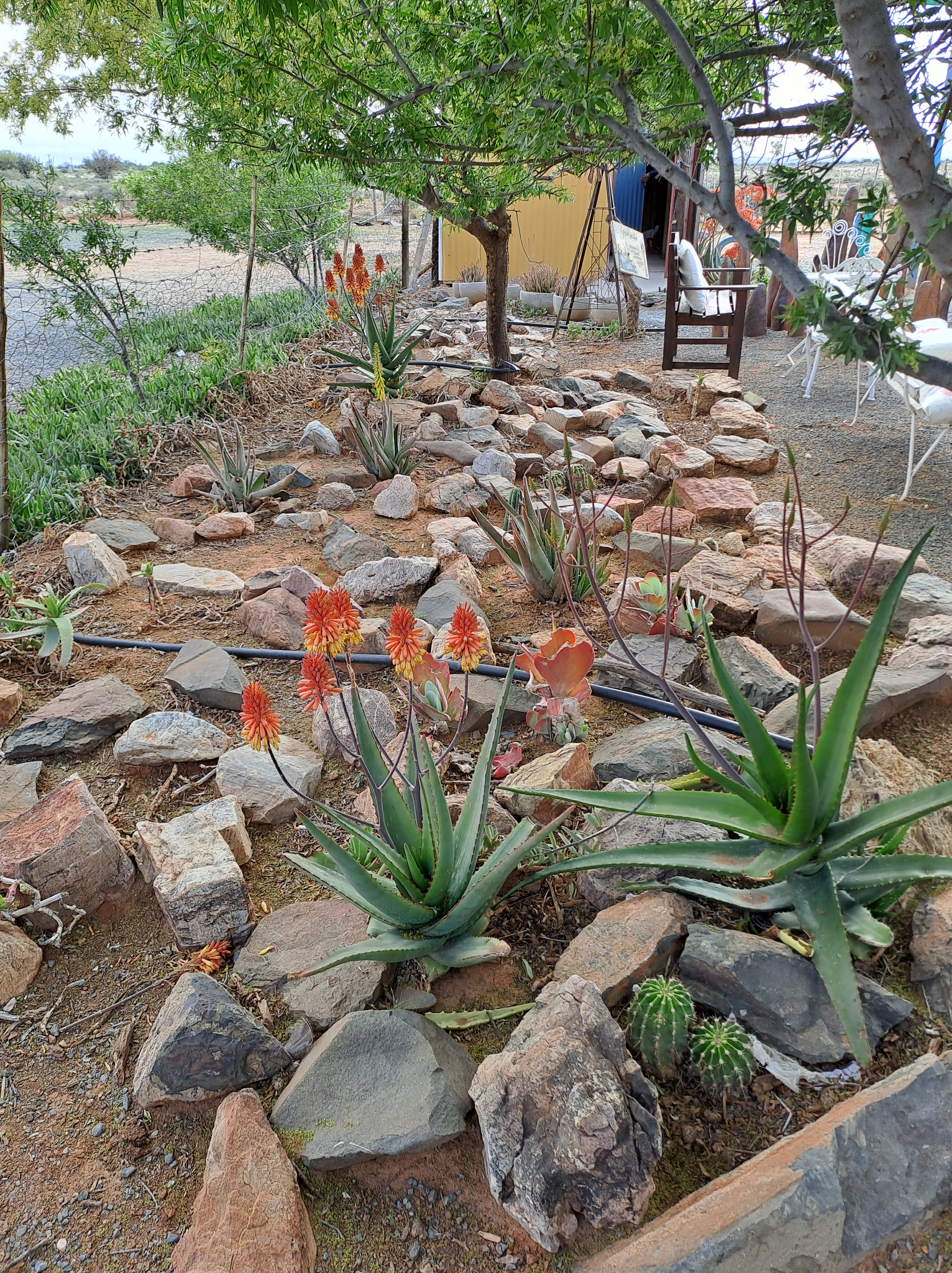 Let ook op die unieke versameling plante in die tuin. Hier is alles gefokus op oorlewing.