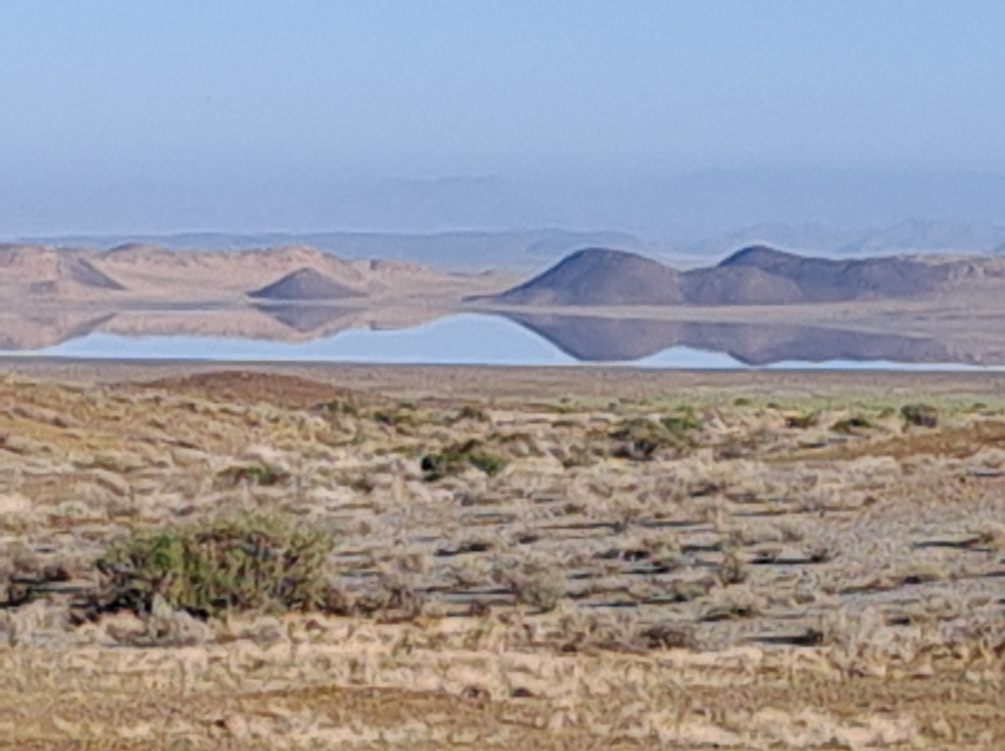 ‘n Interessantheid wat ek nog graag wil ondersoek is Blinkpan noord van die pad. In daardie droë deel lyk dit altyd of die pan vol water is. (Sommer ‘n vinnige selfoonfoto terwyl ons ry.)
