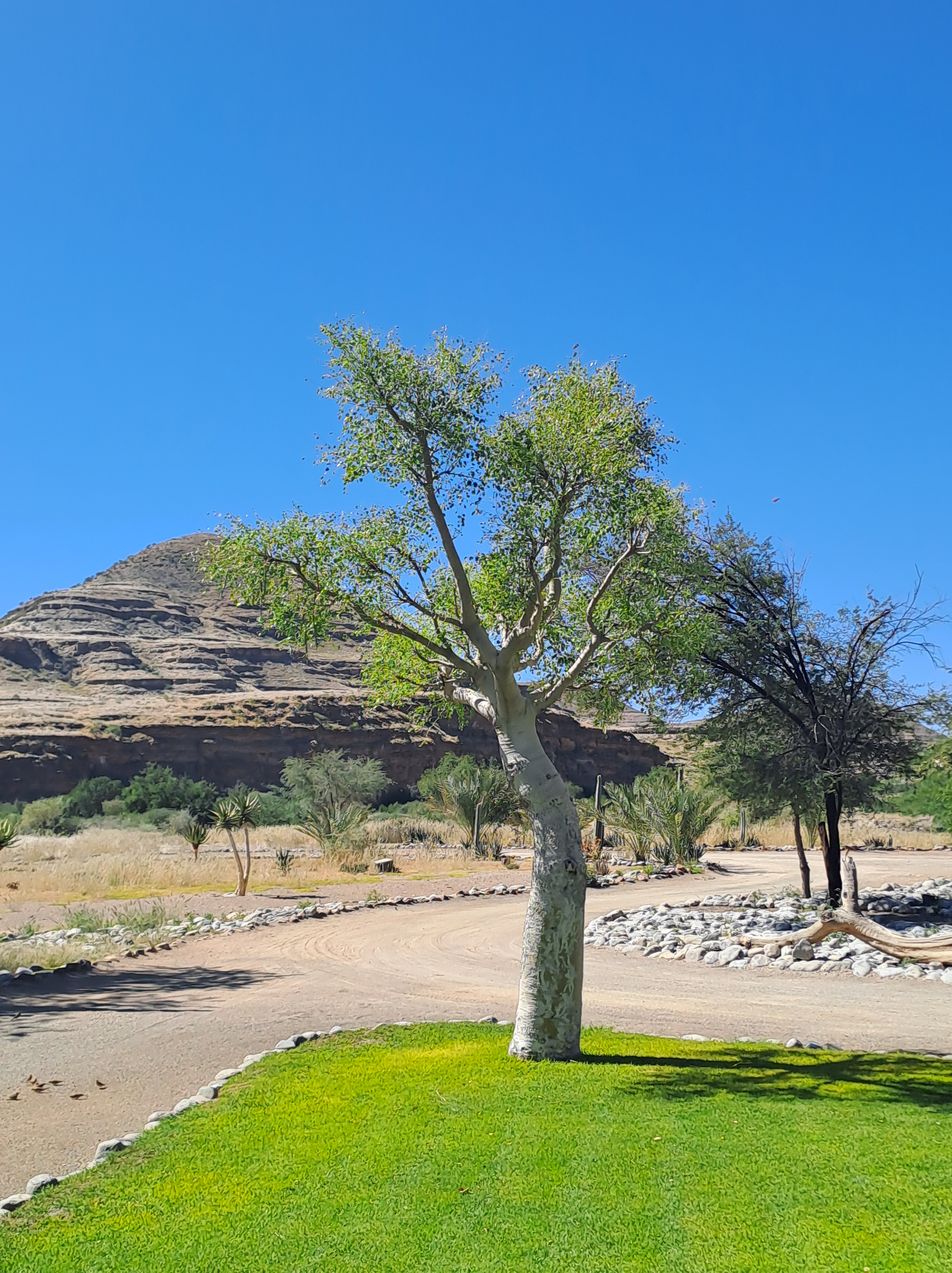 Dis ook gerieflik naby die dorp om jou voorrade by die Spar of Shoprite aan te vul. Daar is ook garages, banke, ‘n Clicks en ‘n MTC vir ‘n Namibiese simkaart. Maak ook ‘n draai by Ry en Kry Slaghuis vir baie goeie vars vleis, biltong en droë wors. Hulle biltongblare is besonder lekker sag en smaaklik. Probeer hulle gerus – dis ‘n lekker peuselhappie vir die langpad.