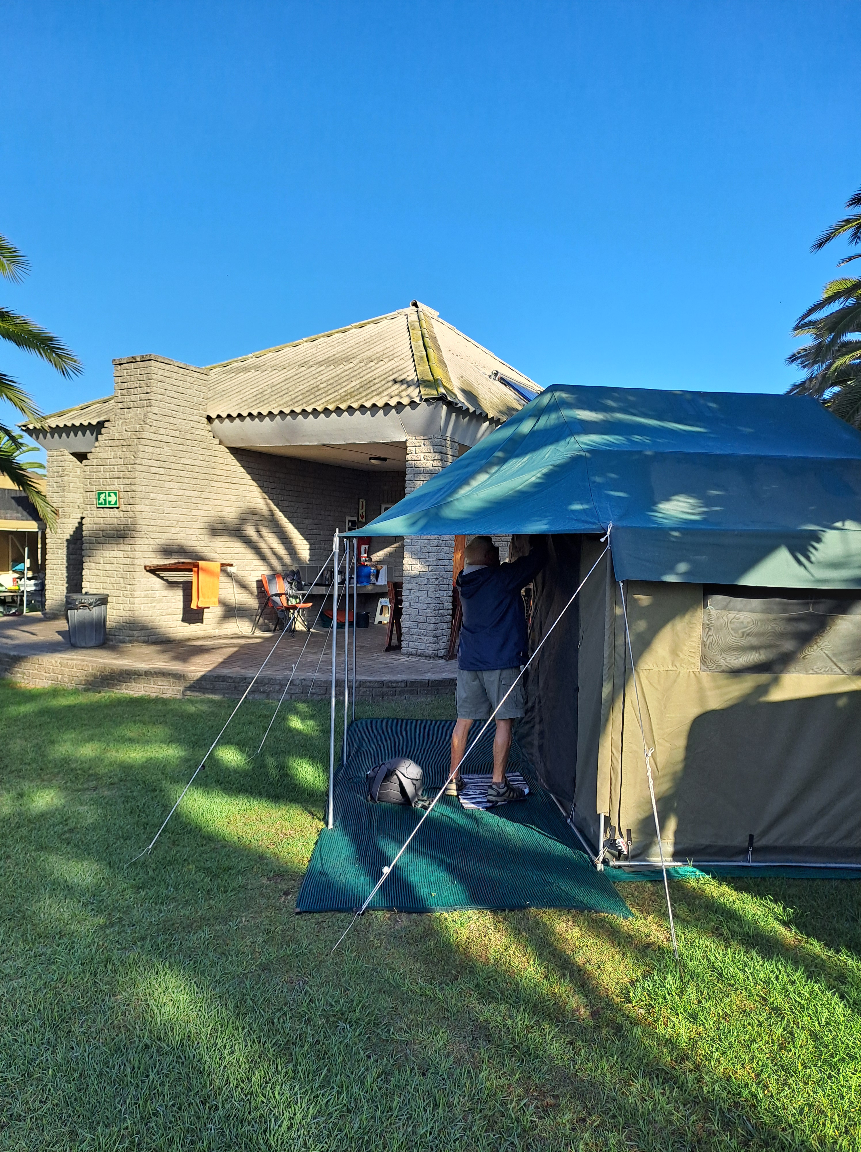 Ons slaan graag by die River Chalets tent op. Van die kampplekke is maar klein. Die ander nadeel is dat dit teen die B1 is. Daar is deur die nag verkeer. En dan is daar soms ook musiek van die dorp af. Die badkamers is mooi skoon en baie gerieflik. Ons het ook al in hulle chalets geslaap. Bespreek maar vroegtydig. Die plek raak vinnig vol. Die Padstal by die ingang het heerlike kos en koffie. Hulle pizza’s was ‘n lekker bederf. (Truffle olie is heerlik op ‘n pizza)