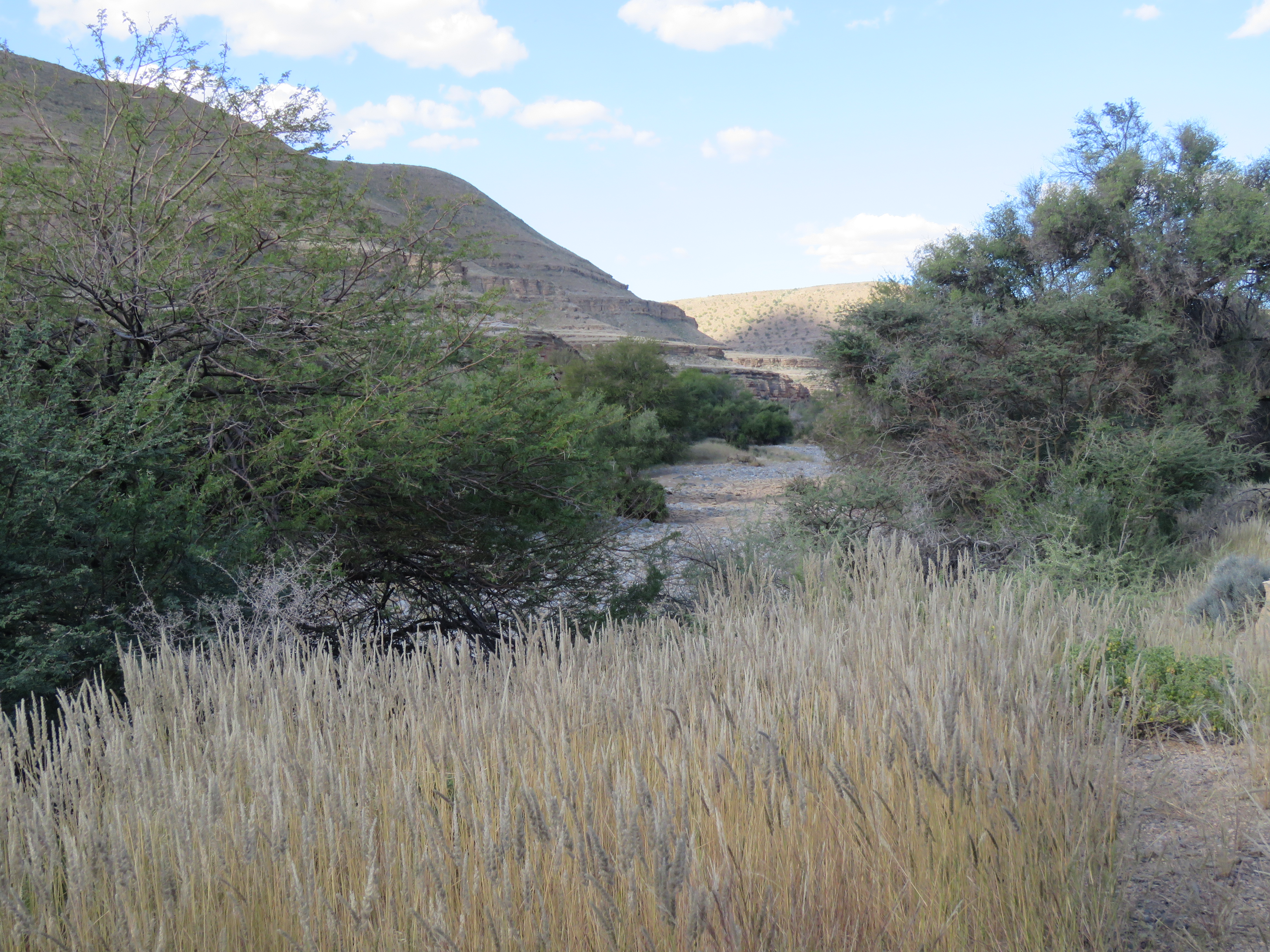 Van hier geniet ons die Karasberge, ook vanjaar spietwit van die gras wat nou alreeds in die saad staan. Ons stop ook graag by een van Namibië se mooi skoon plekke langs die pad. Gelukkig is daar nog genoeg padkos. Dis nou die voordeel van ‘n yskas in die boswa. Ons sorg net altyd vir warm water in ons fles.