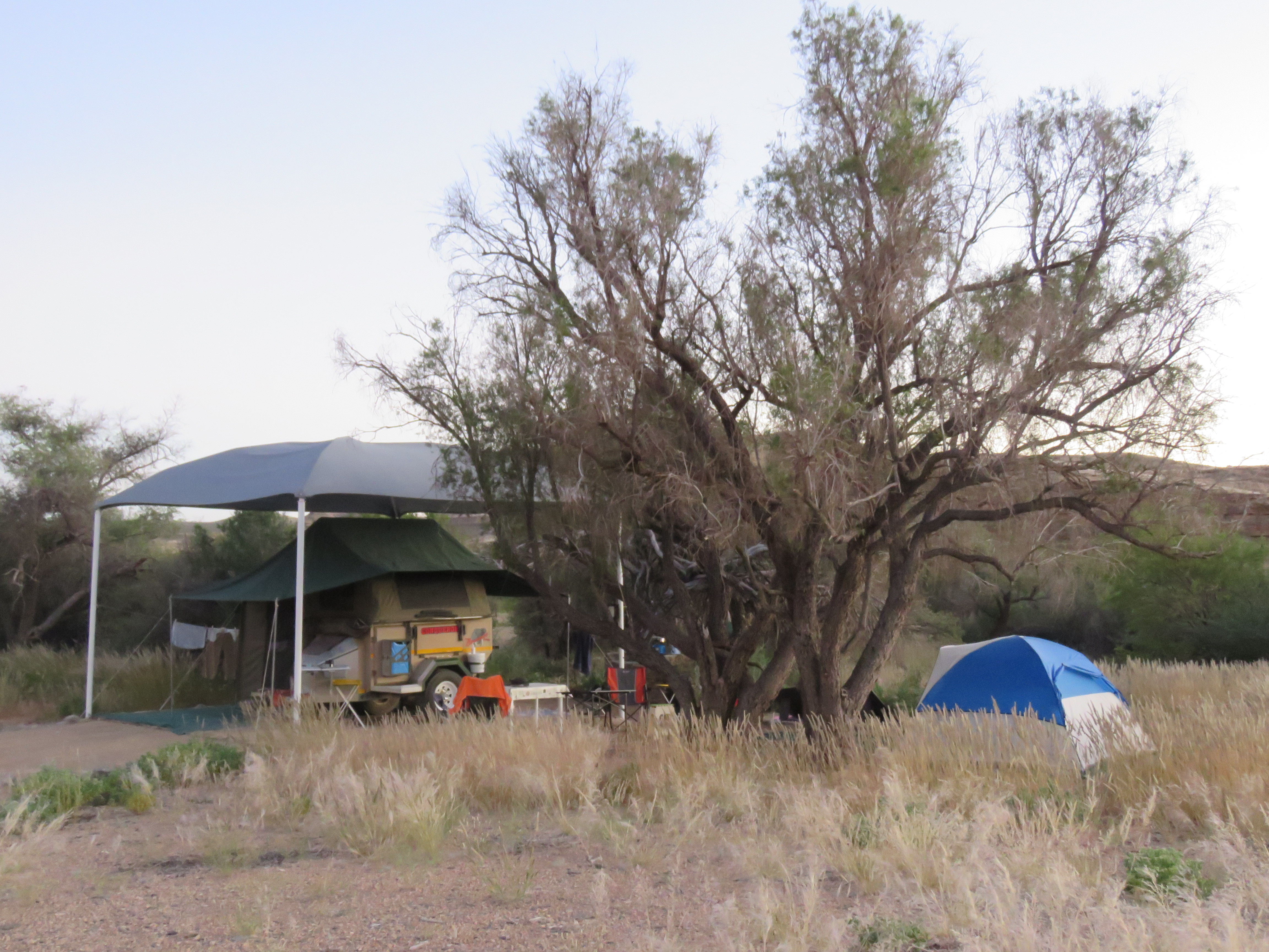 Alte Brucke is die kamp in Swakop, dis een plek waar mens vroeg moet bespreek om plek te kry. Ons het hier al op verskeie plekke tent opgeslaan. Oral is dit net lekker om jou eie badkamer by jou tent te hê. Die opwasbak en werksblad met kragpunte en braaiplek laat ons baie spesiaal en bederf voel. Die vriendelike en behulpsame personeel doen moeite om die terrein mooi netjies te hou. Groet en kuier bietjie met hulle.
