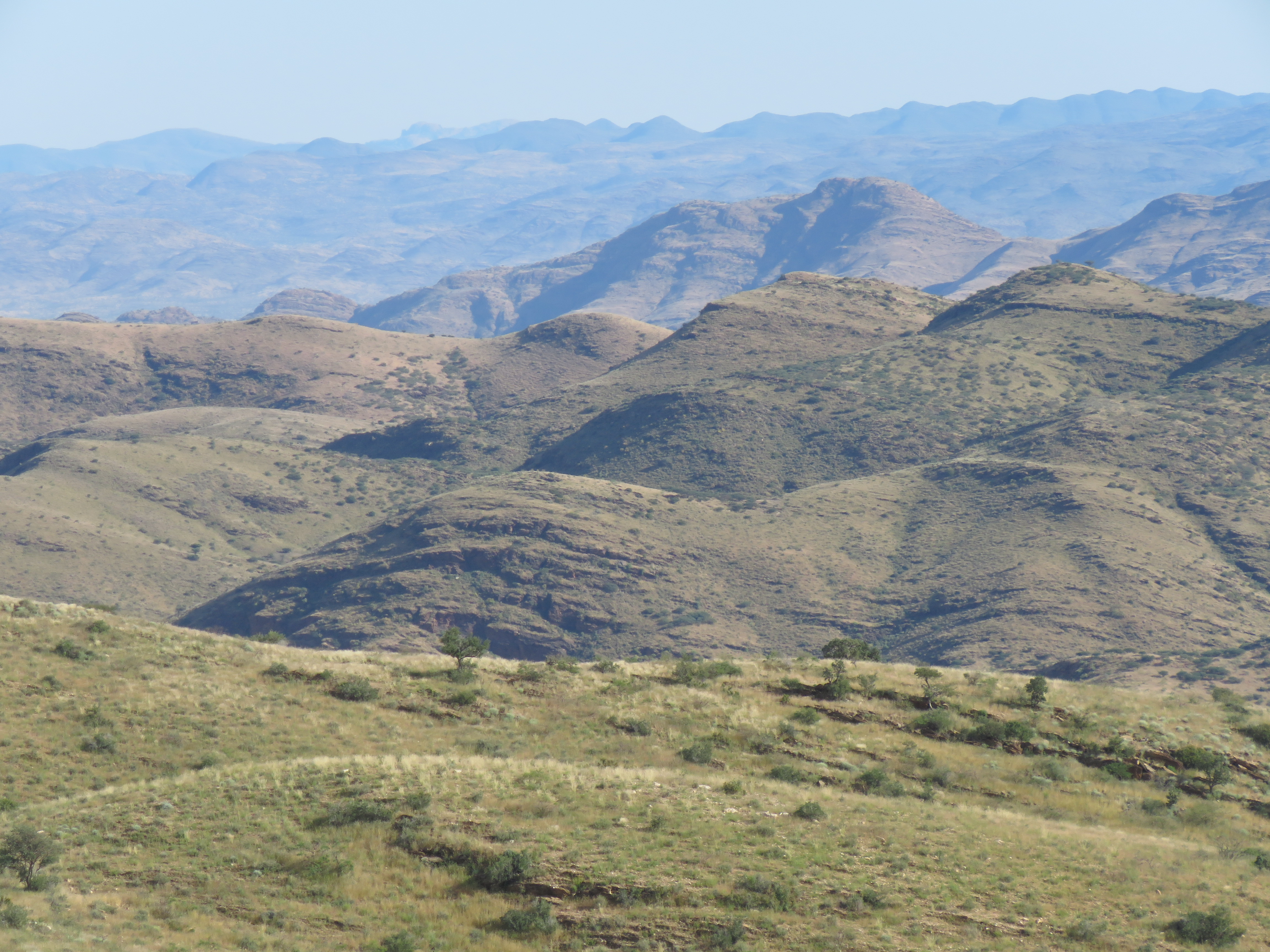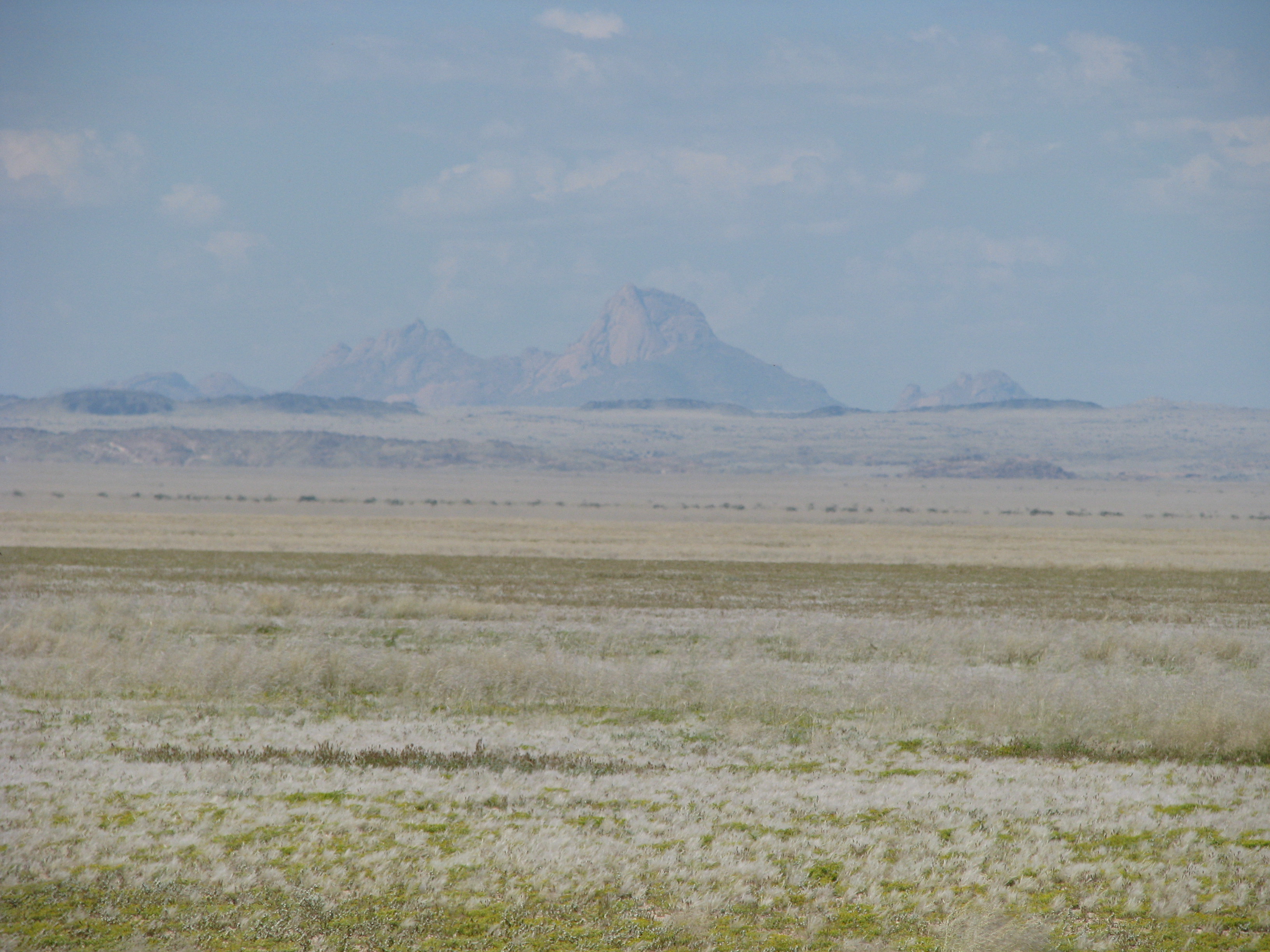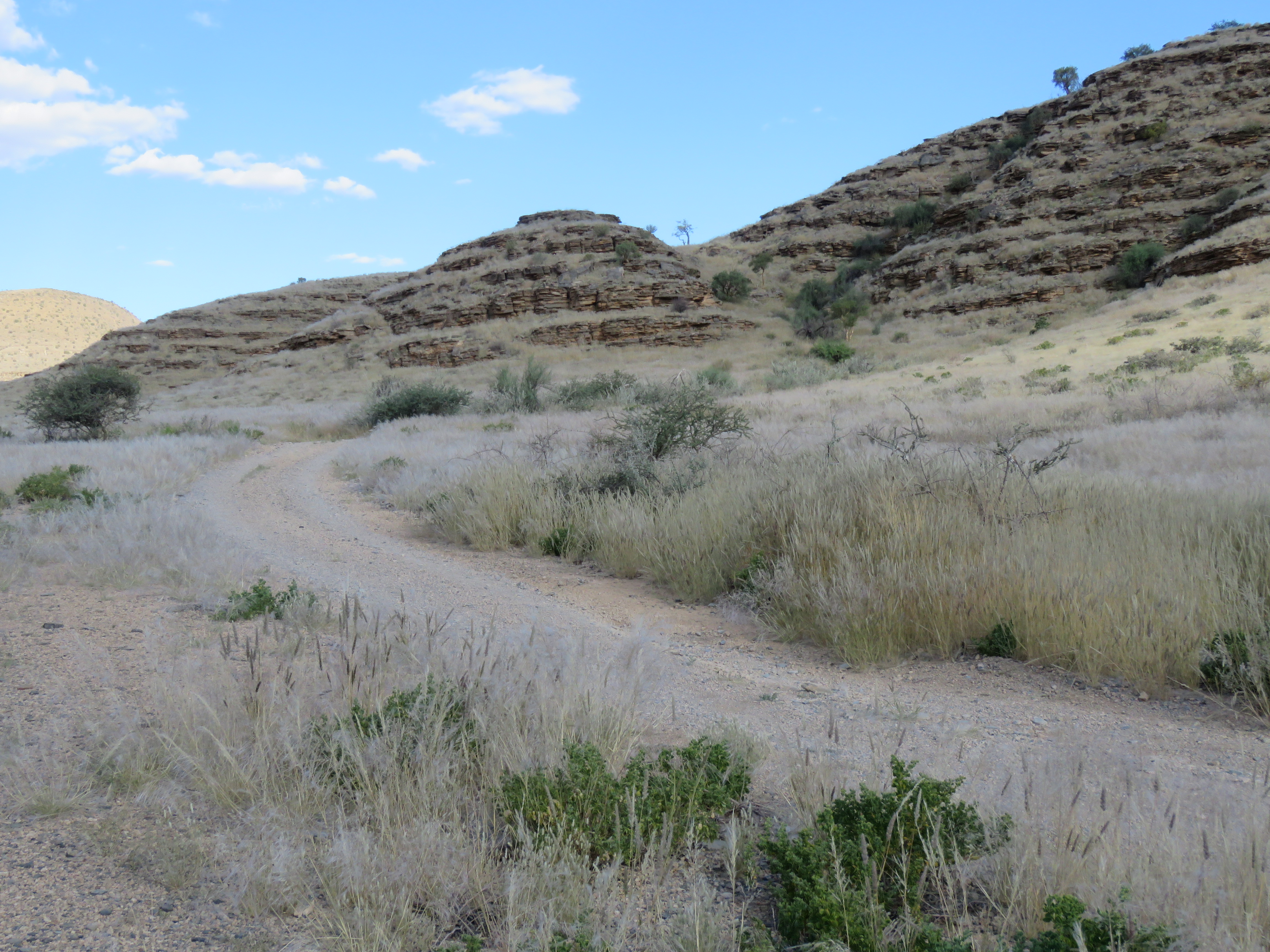 Ons ry met die B1 na Usakos toe. Dis net 161 km, waarvan die meeste teerpad is, tot by ons volgende bestemming. Soos ons vorder skuif ons bestemming in die verte nader. Die woestyn bederf ons met baie mooi gras.