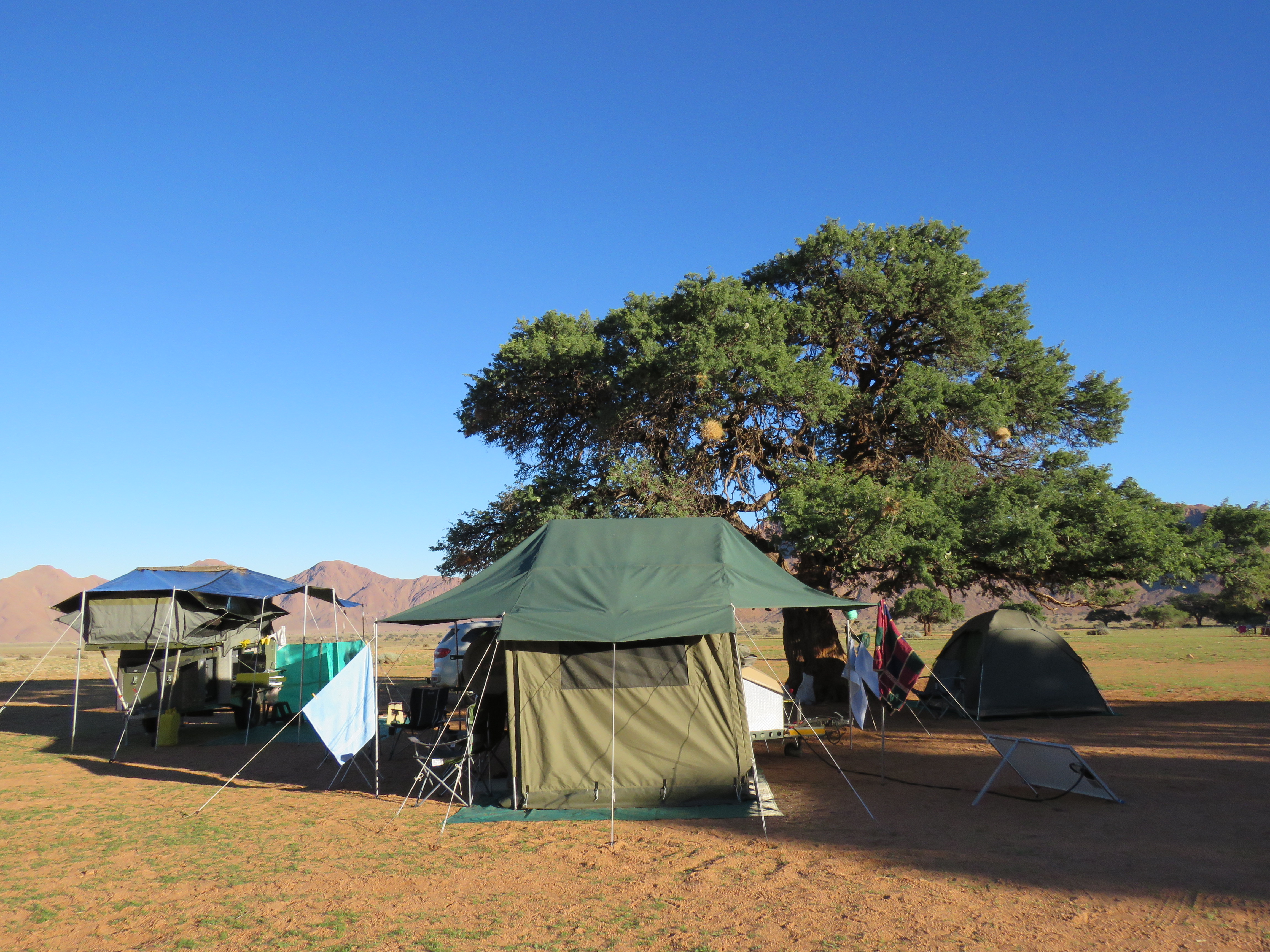 - Klein Aus Vista of Eagel’s nest: is ‘n gewilde oornag plek met huisies en kampplekke met netjiese ablusie. Hier het ons al bitter koud gekry. Dis Namibië se plek van uiterstes. Of bitter warm of bitter koud, selfs sneeu of ysreën het ons al hier beleef. As jy hier slaap sorg jy dat jy genoeg komberse en warmsjokelade het. Die badkamers is nogal ver van die staanplekke af, veral as dit reën en koud is.