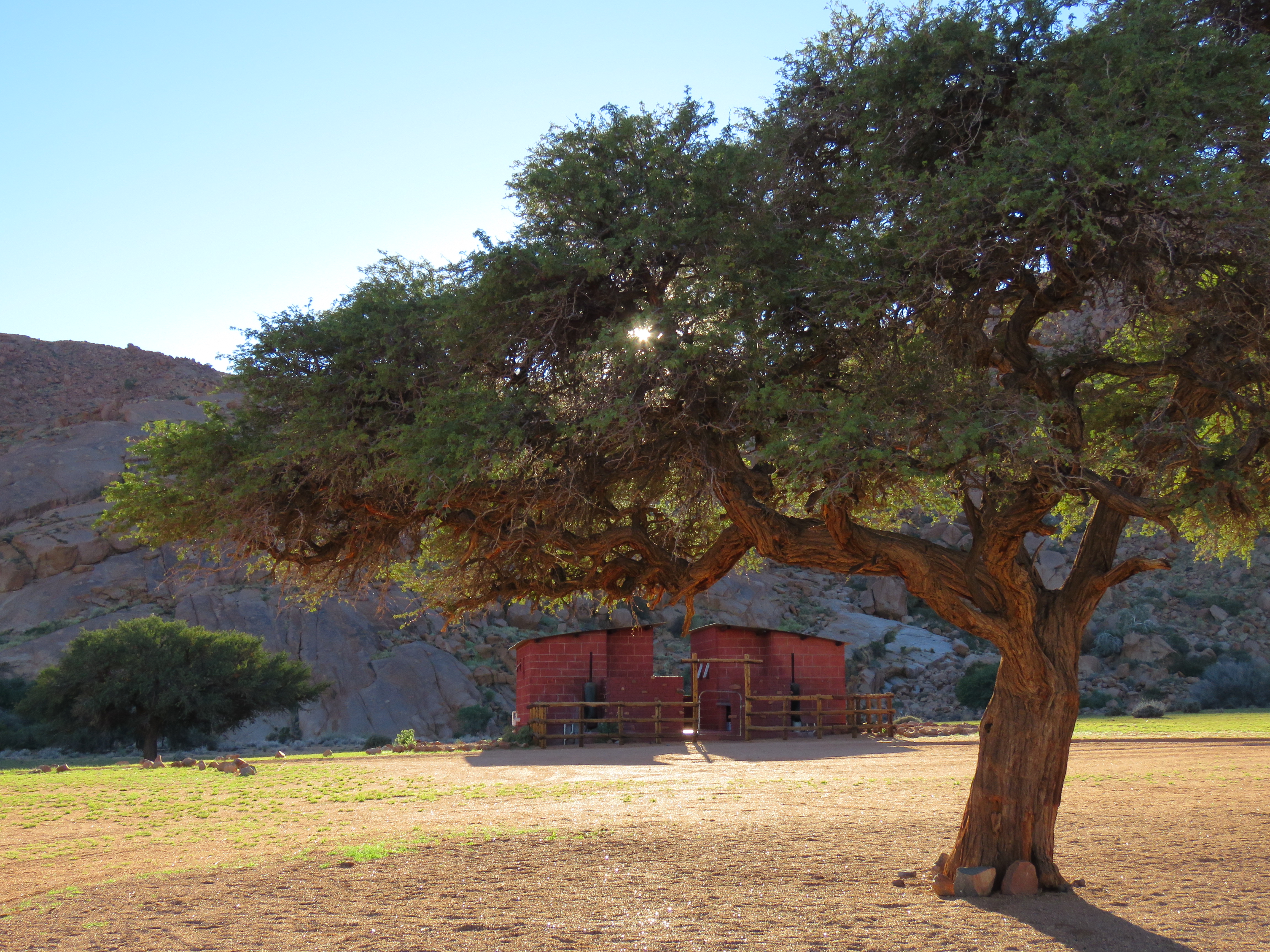 Dit is nogal afgeleë en stil, maar netjies uit gelê tussen die rooi graniet rotse van die Tirasberge. Sommige staanplekke het hul eie ablusiegeriewe, ander maak weer van die netjiese gesamentlike geriewe gebruik. Hulle maak gebruik van sonpanele, maw die warmwater is beperk. Sorg maar dat jy vroeg daar is.