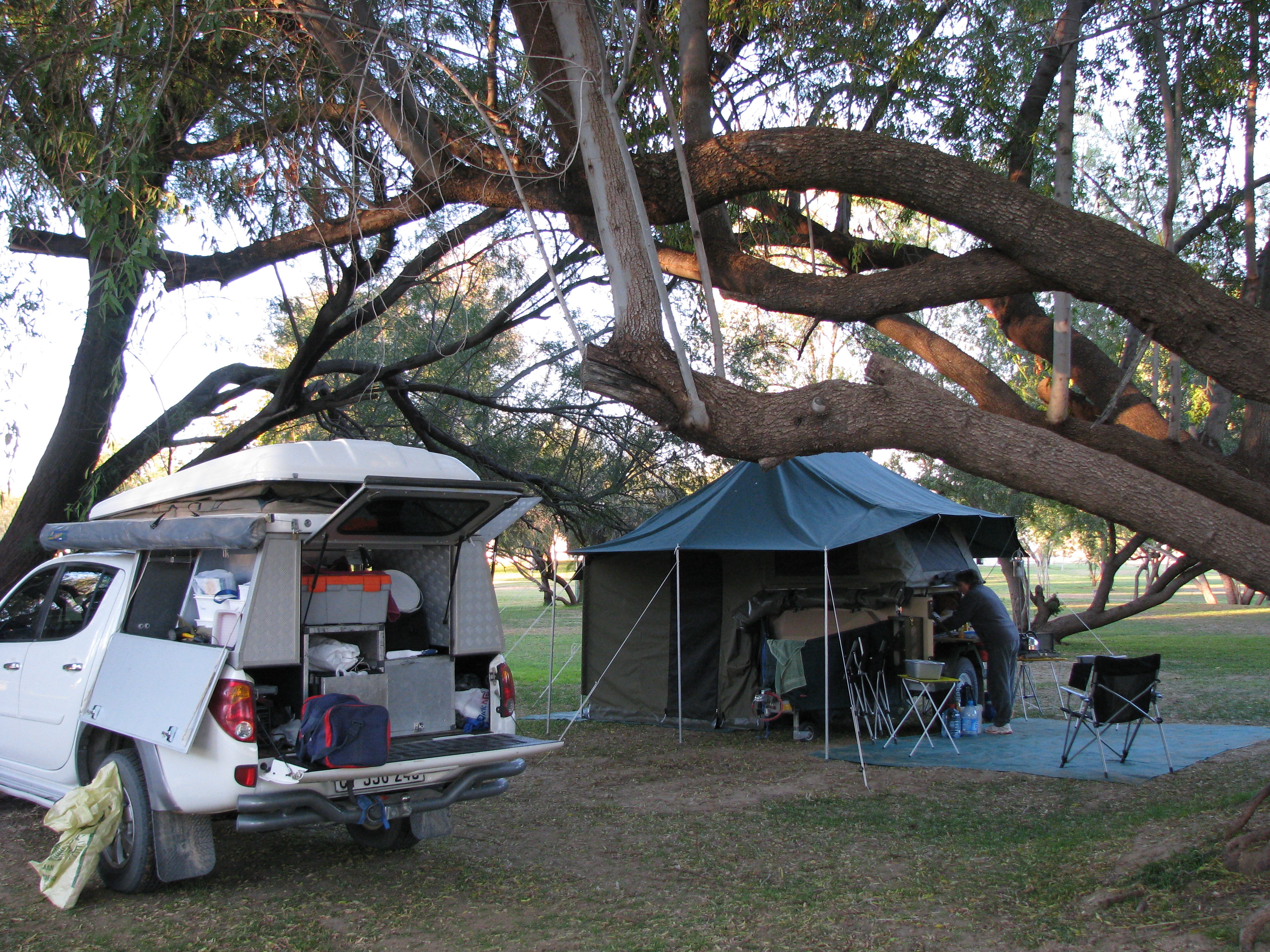 Die weersomstandighede speel ook ‘n rol. Die voorkant van jou tent moenie die wind vang nie, tog wil jy ook nie die ooste of weste son op jou kombuis he nie. Daar is immers niks so lekker as om jou eerste beker koffie of om jou aandete in die skadu van jou tent te maak nie. Noord of suid is ideaal – ongelukkig verleen die terrein hom nie altyd daartoe nie en vat jy maar wat jy kry.